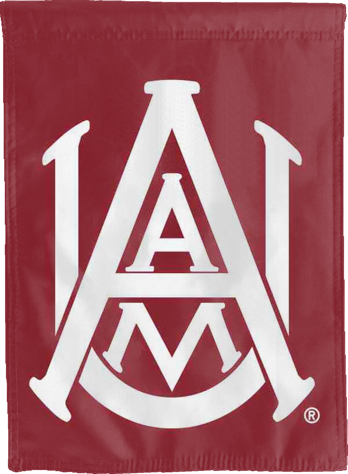 alabama A&M university logo reading correctly on both sides of maroon double sided house flag
