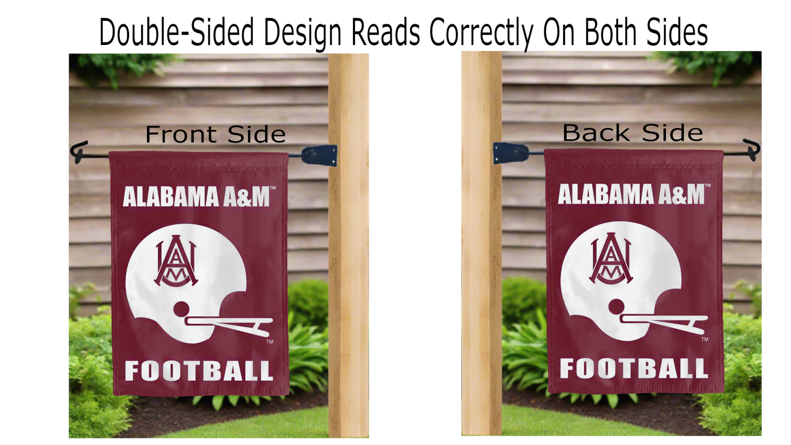 Let your voice scream "Go Bulldogs!" with this NCAA Officially Licensed 13" x 18" Alabama A&M University Football Garden Flag! Made of 2-ply polyester, this flag is the result of two dye-sublimated flags sewn together with a middle liner sewn in between them to stop the see-through, allowing the Alabama A&M University Football logo to look clear and read correctly on both sides. No matter where you are, this garden flag is sure to make it clear your loyalty lies with the Alabama A&M University Bulldogs on game day.