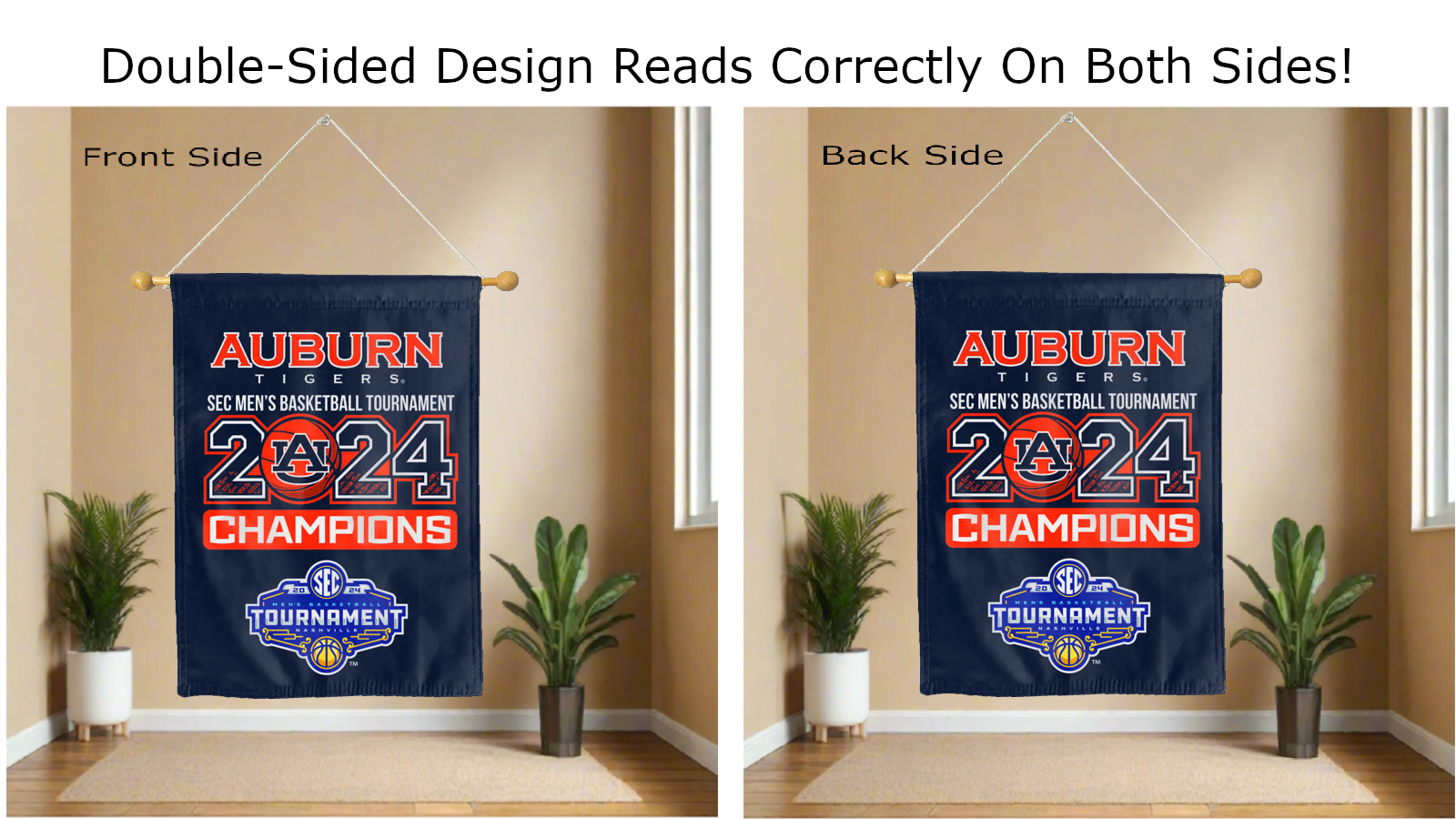 Celebrate Auburn's victory with this Officially Licensed, 30" x 40" Auburn SEC Men's Basketball Tournament Champions House Flag 2024! The logo is printed on this double sided flag, allowing them to read correctly on both sides. The house flag itself is made of blockout material and includes a sleeve across the top that makes it easy for you to insert the flag into your flag pole, should you choose to hang the flag outside. Made right here in the U.S.A., this Auburn SEC Men's Basketball Tournament Champions House Flag 2024 is sure to make it clear your loyalty was and will continue to be with the Tigers on game day.