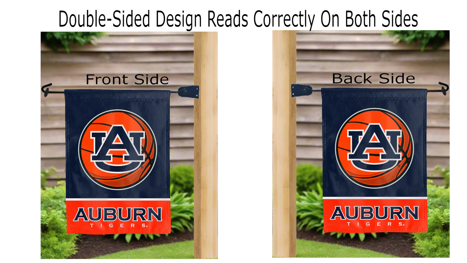 auburn basketball logo reading correctly on both sides of garden flag