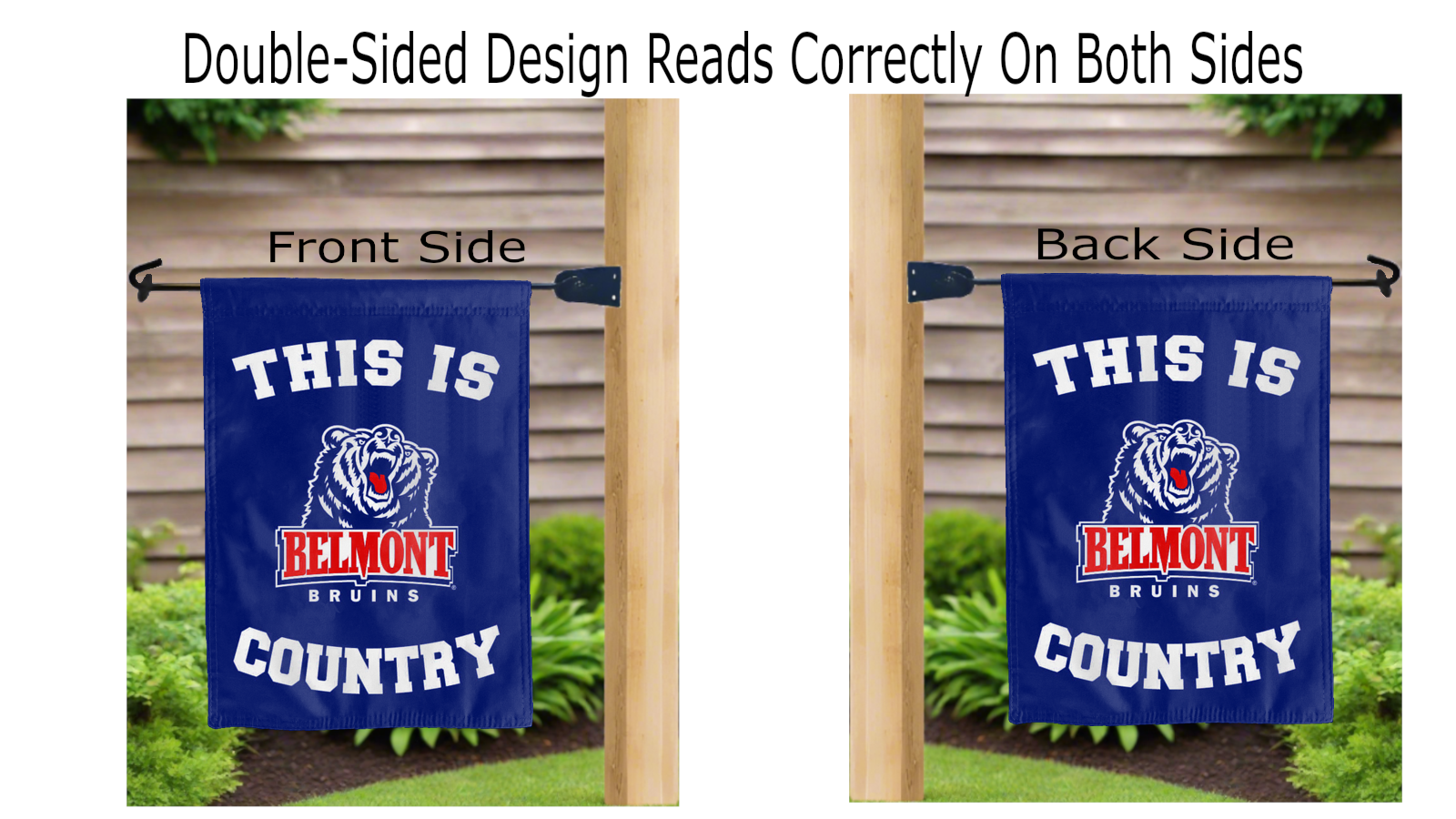Decorate your yard with this Officially Licensed, 13" x 18" Belmont University This Is Belmont University Bruins Country Garden Flag! Made of 2-ply polyester, this flag is the result of two dye-sublimated flags sewn together with a middle liner sewn in between them to stop the see-through, allowing the Belmont University This Is Belmont University Bruins Country logo to look clear and read correctly on both sides. The sleeve across the top makes it easy for you to insert the flag into your garden flag stand. No matter who you are, this garden flag is a splendid choice for any Belmont University Bruins fans looking to add some flair to their yard, porch, entryway, or garden.