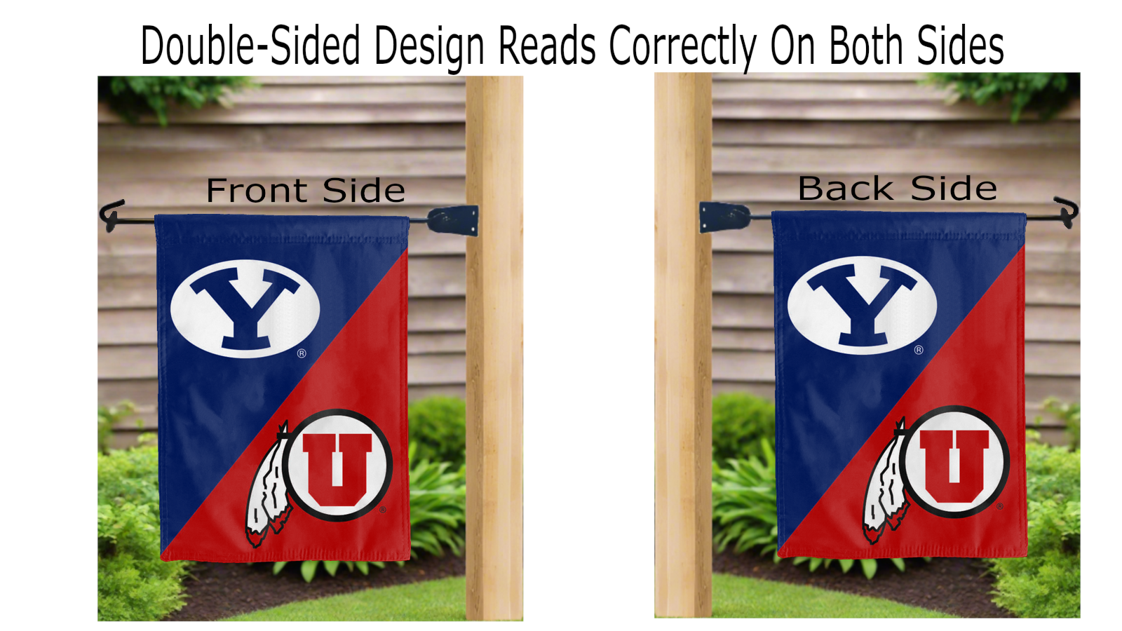 Show your support for both the BYU Cougars and University of Utah Utes with this Officially Licensed, 13" x 18" BYU University of Utah House Divided Garden Flag!! Made of polyester, this flag is the ultimate result of two screen-printed flags sewn together to create this house divided garden flag. A middle liner is sewn in between the two flags to stop the see-through, allowing the logos to look clear and read correctly on both sides. The sleeve across the top makes it easy for you to insert the flag into your garden flag stand. No matter what day of the week, this garden flag is sure to make it clear your loyalty lies with both teams on game day.