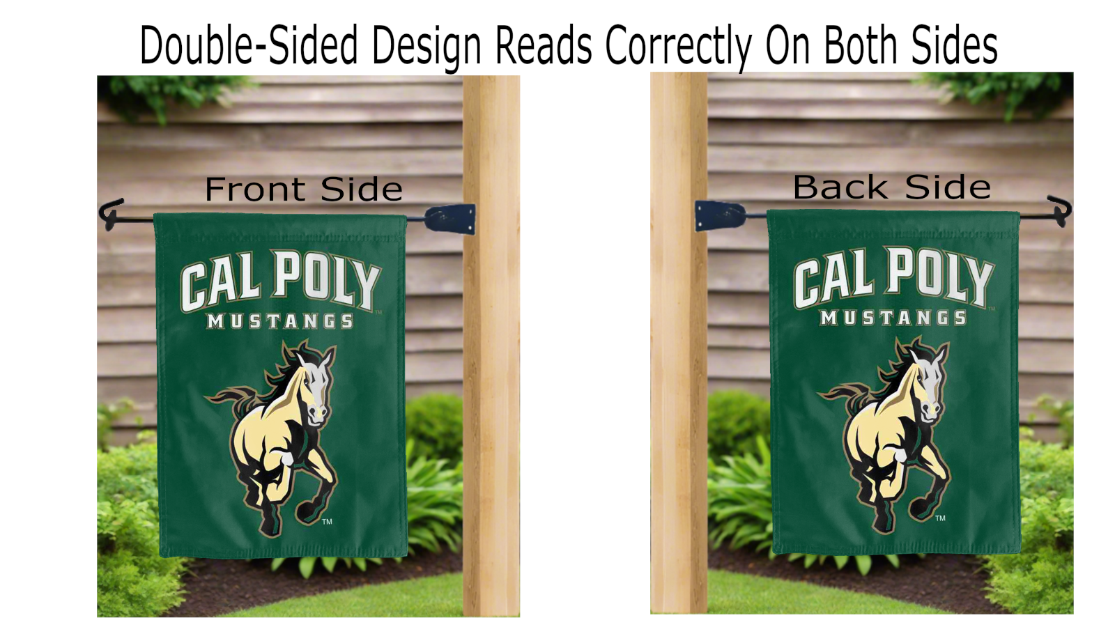 Let your voice scream “Go Mustangs!” with this NCAA Officially Licensed 13” x 18” California Polytechnic State University Mustangs Garden Flag! Made of 2-ply polyester, this flag is the result of two flags being screen printed and sewn together with a middle liner sewn in between them to stop the see-through, allowing the California Polytechnic State University Mustangs logos to look clear and read correctly on both sides. The sleeve across the top makes it easy for you to insert the flag into your garden flag stand. No matter where you are, this garden flag is sure to make it clear your loyalty lies with the California Polytechnic State University Mustangs on game day.