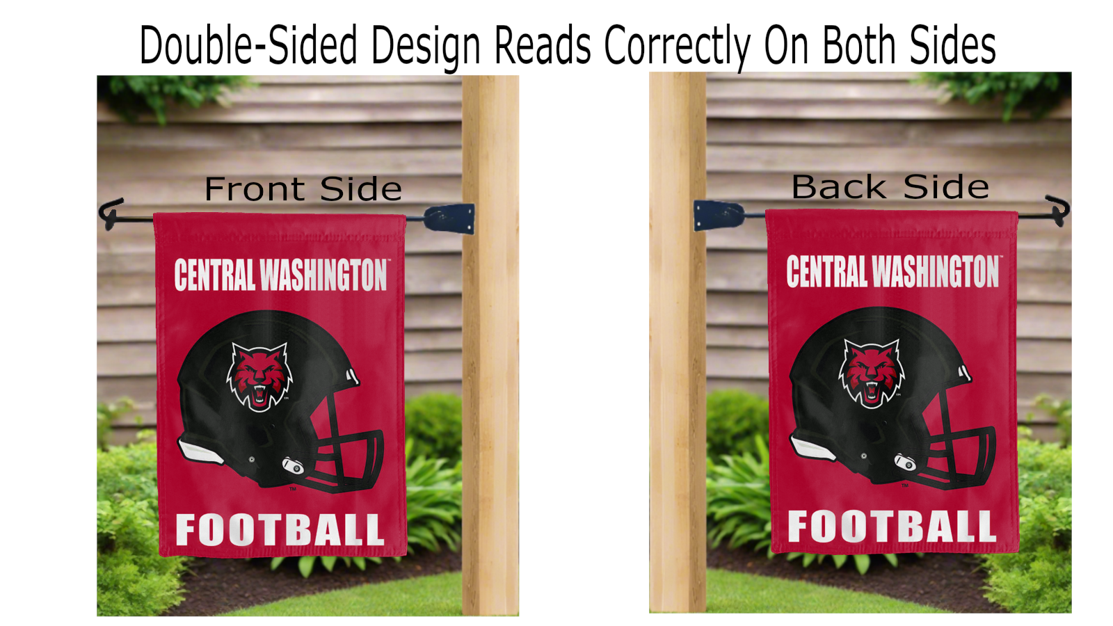 Let your voice scream "Go Wildcats!" with this NCAA Officially Licensed 13" x 18" Central Washington University Football Garden flag! Made of 2-ply polyester, this flag is the result of two dye-sublimated flags sewn together with a middle liner sewn in between them to stop the see-through, allowing the Central Washington University Football logo to look clear and read correctly on both sides. The sleeve across the top makes it easy for you to insert the flag into your garden flag stand. No matter where you are, this garden flag is sure to make it clear your loyalty lies with the Central Washington University Wildcats on game day.