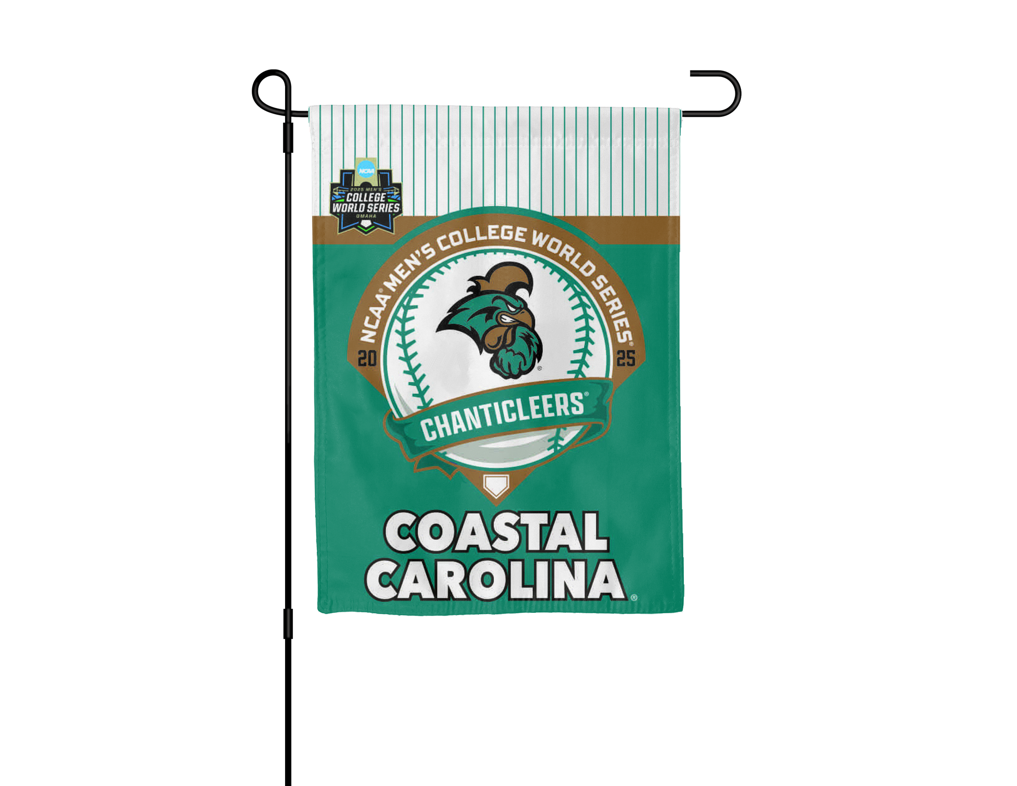Let the whole neighborhood know you're rooting for the Chanticleers Baseball team during the College World Series with this Officially Licensed Coastal Carolina College World Series 2025 Baseball Garden Flag!