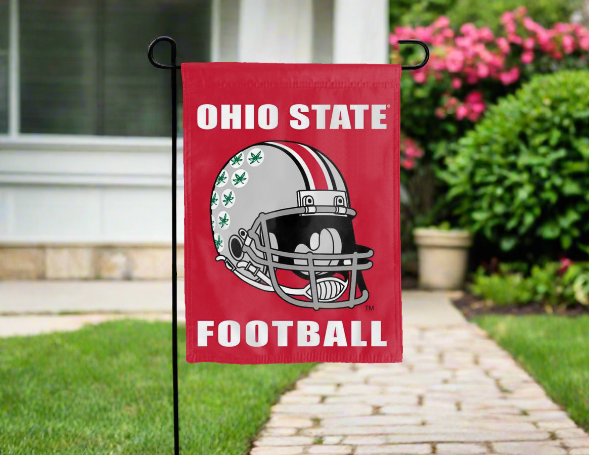 Love Ohio State Football? Want a garden flag that will allow you to show your support for the Ohio State Football team? Then look no further than this NCAA Officially Licensed 13x18 Ohio State Football Garden Flag!! This Ohio State Football Garden flag is the result of two flags being sewn together with a middle liner sewn in between them to stop the see-through and allow the Ohio State Football logo to look and read correctly on both sides of this 13" x 18" garden flag. The sleeve across the top makes it easy for you to insert the flag into your garden flag stand. Designed for a dedicated fan like you, this 13x18 Ohio State Football Garden Flag is sure to make it clear your loyalty lies with the Buckeyes on game day.