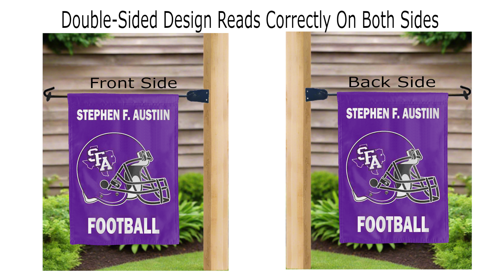 Let your voice scream "Go Lumberjacks!" with this NCAA Officially Licensed, 13" x 18" Stephen F. Austin State University Football Garden flag! Made of 2-ply polyester, this flag is the result of two dye-sublimated flags sewn together with a middle liner sewn in between them to stop the see-through, allowing the logo to look clear and read correctly on both sides. The sleeve across the top makes it easy for you to insert the flag into your garden flag stand. No matter where you are, this garden flag is sure to make it clear your loyalty lies with the Lumberjacks on game day.