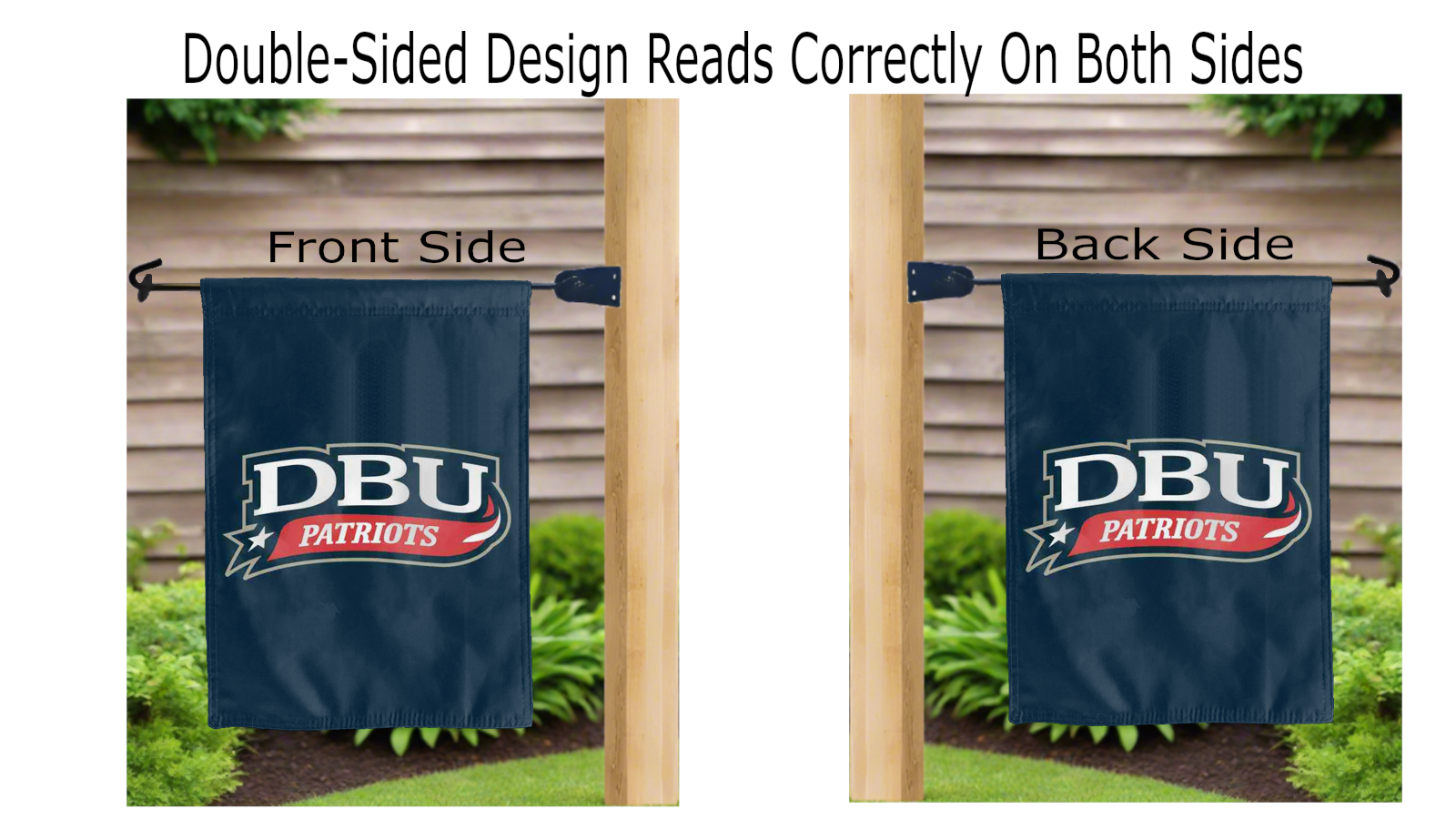 Let your voice scream “Go Patriots!” with this NCAA Officially Licensed, 13” x 18” Dallas Baptist University Patriots Garden flag! Made of 2-ply polyester, this flag is the result of two flags being screen printed and sewn together with a middle liner sewn in between them to stop the see-through, allowing the Dallas Baptist University Patriots logos to look clear and read correctly on both sides. The sleeve across the top makes it easy for you to insert the flag into your garden flag stand. No matter where you are, this garden flag is sure to make it clear your loyalty lies with the Dallas Baptist University Patriots on game day.