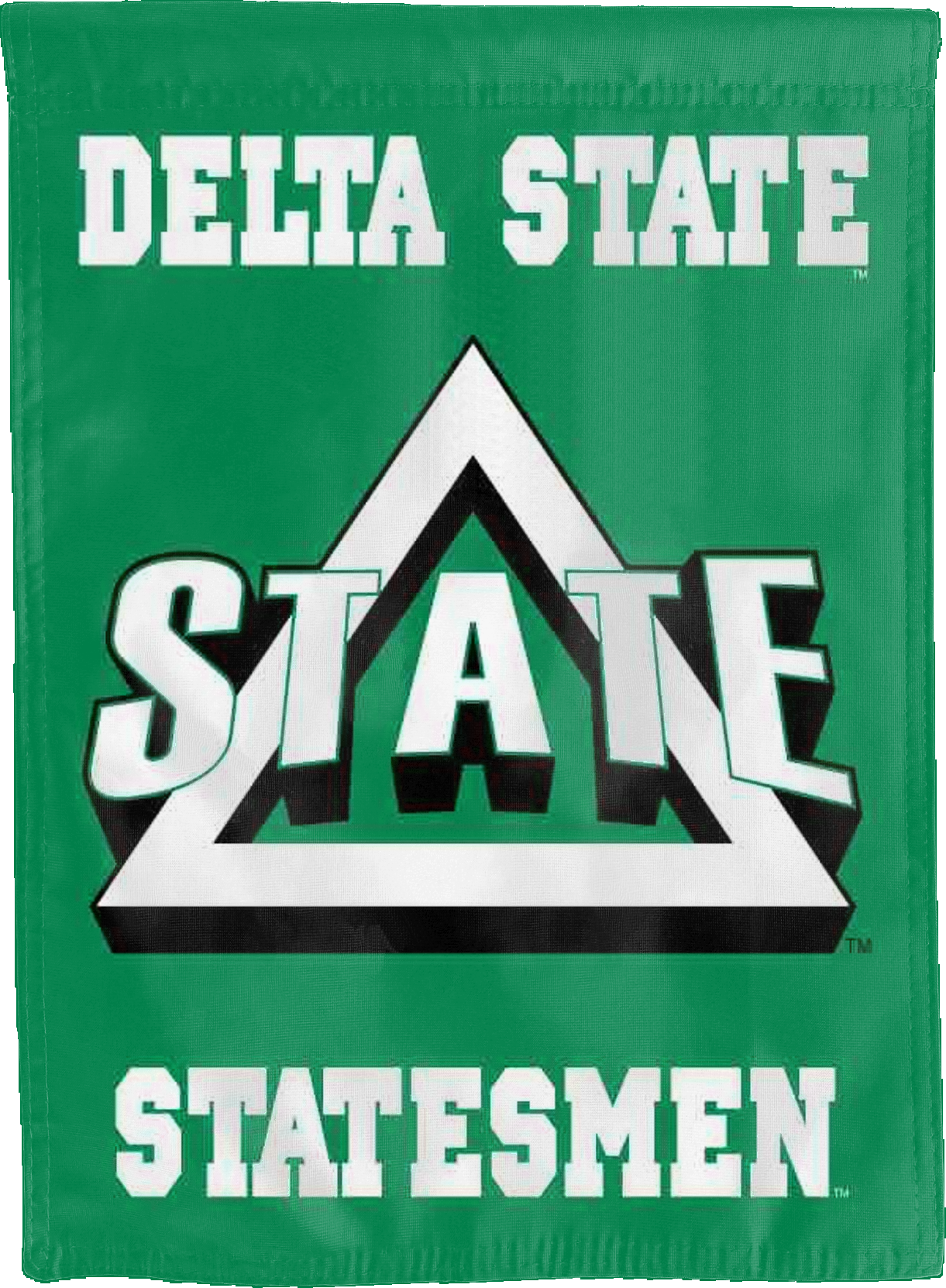 Break the monotonous look of your room with this Officially Licensed Delta State University Double Sided House Flag! Measuring 30" x 40", this house flag is the product of two screen-printed flags sewn together with a middle liner sewn in between the two flags to stop the see-through and allow the Delta State University Statesmen logo to read correctly on both sides. The sleeve across the top also makes it easy to insert the flag into a flagpole or flag hanger if you choose to hang it outside your home. Regardless of where you choose to hang it, this Delta State University Double Sided House Flag is sure to reflect your school pride any day of the week.