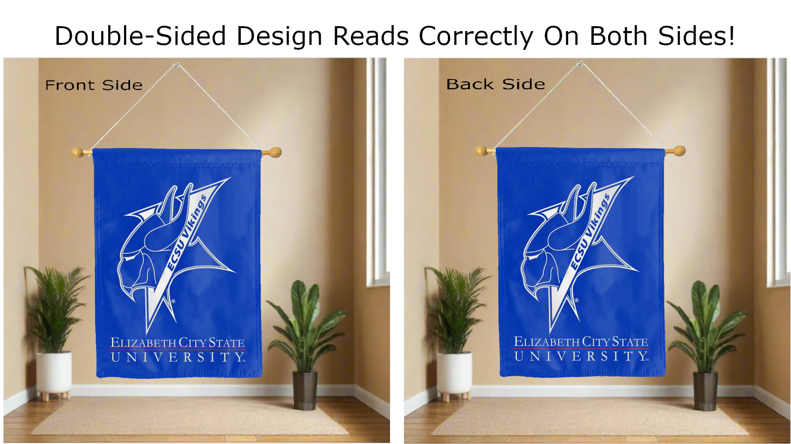 Break the monotonous look of your room with this Officially Licensed Elizabeth City State University Double Sided House Flag! Measuring 30" x 40", this house flag is the product of two screen-printed flags sewn together with a middle liner sewn in between the two flags to stop the see-through and allow the logo to read correctly on both sides. The sleeve across the top also makes it easy to insert the flag into a flagpole or flag hanger if you choose to hang it outside your home. Regardless of where you choose to hang it, this Elizabeth City State University Double Sided House Flag is sure to reflect your school pride any day of the week.