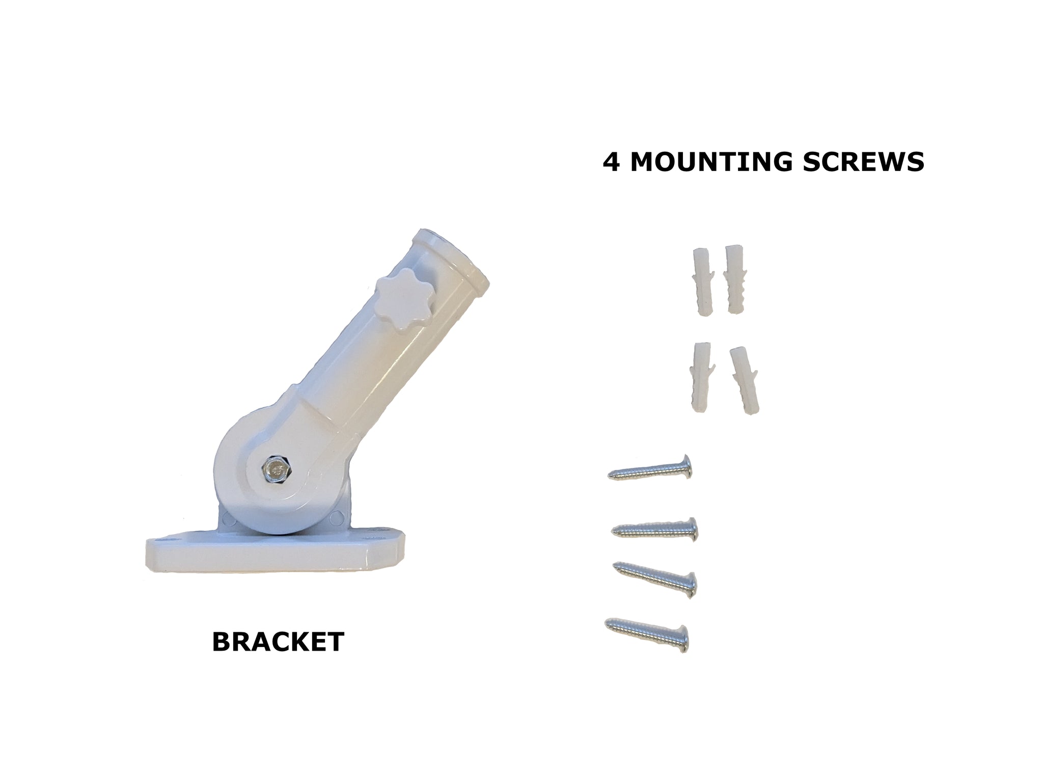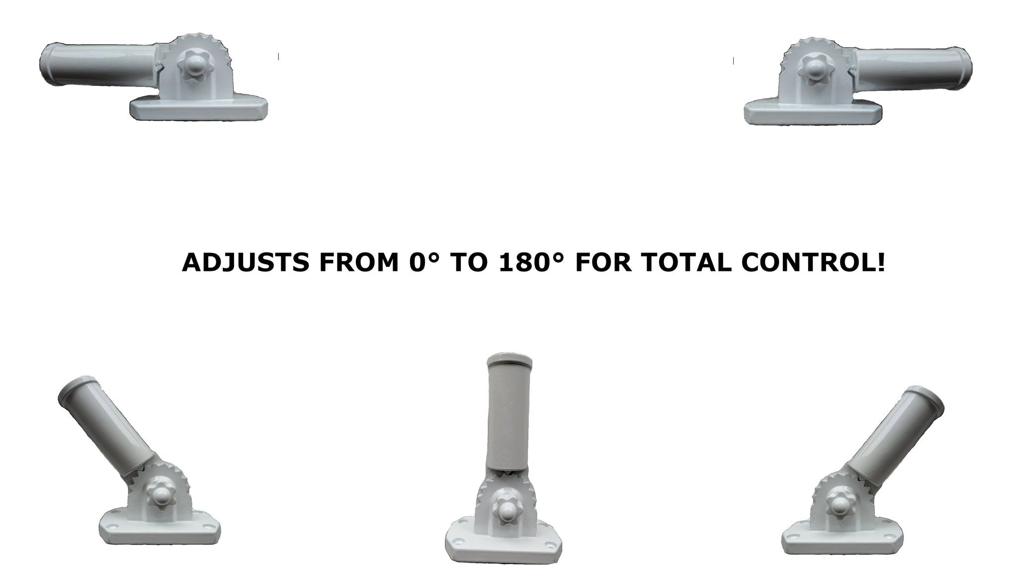 Covered with a powder-coat finish on the outside, this flag bracket comes with four mounting screws and adjusts anywhere from 0 to 180 degrees, giving you total control over however you wish to display your flag.