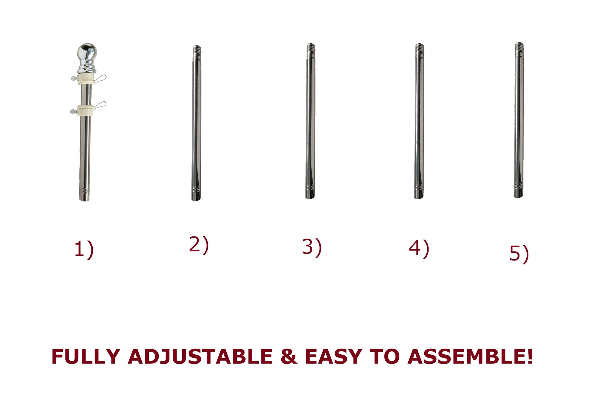 This bundles includes a stainless-steel flag pole that adjusts up to 6 feet and an aluminum wall mount flag pole bracket that rotates anywhere from 0 to 180 degrees, which gives you complete control over how you want to best display your flag.