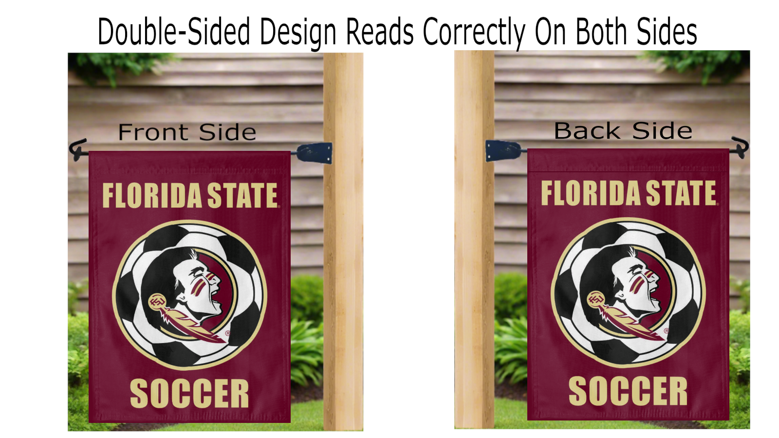double sided florida state fsu soccer garden flag displayed on both sides from a mailbox flagpole