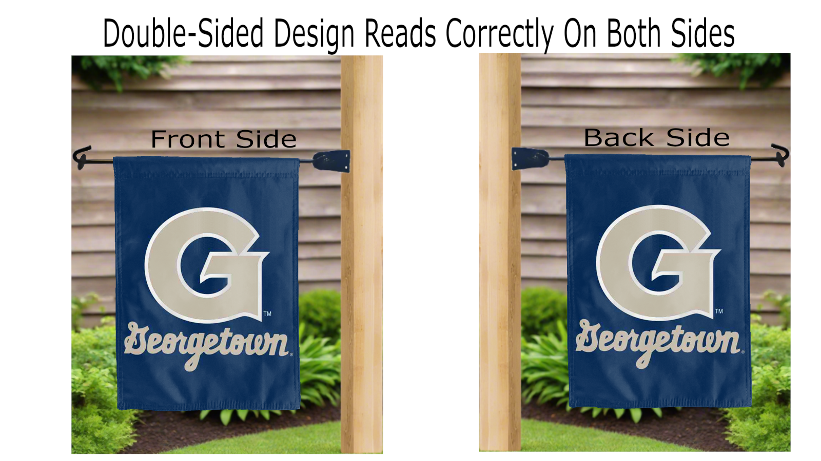 Let your voice scream “Go Hoyas!” with this NCAA Officially Licensed Georgetown University 13x18 Garden Flag with G Georgetown Logo! Made of 2-ply polyester, this flag is the result of two flags being screen printed and sewn together with a middle liner sewn in between them to stop the see-through, allowing the G Georgetown Logo to look clear and read correctly on both sides. The sleeve across the top makes it easy for you to insert the flag into your garden flag stand. No matter where you are, this garden flag is sure to make it clear your loyalty lies with the Georgetown University Hoyas on game day.