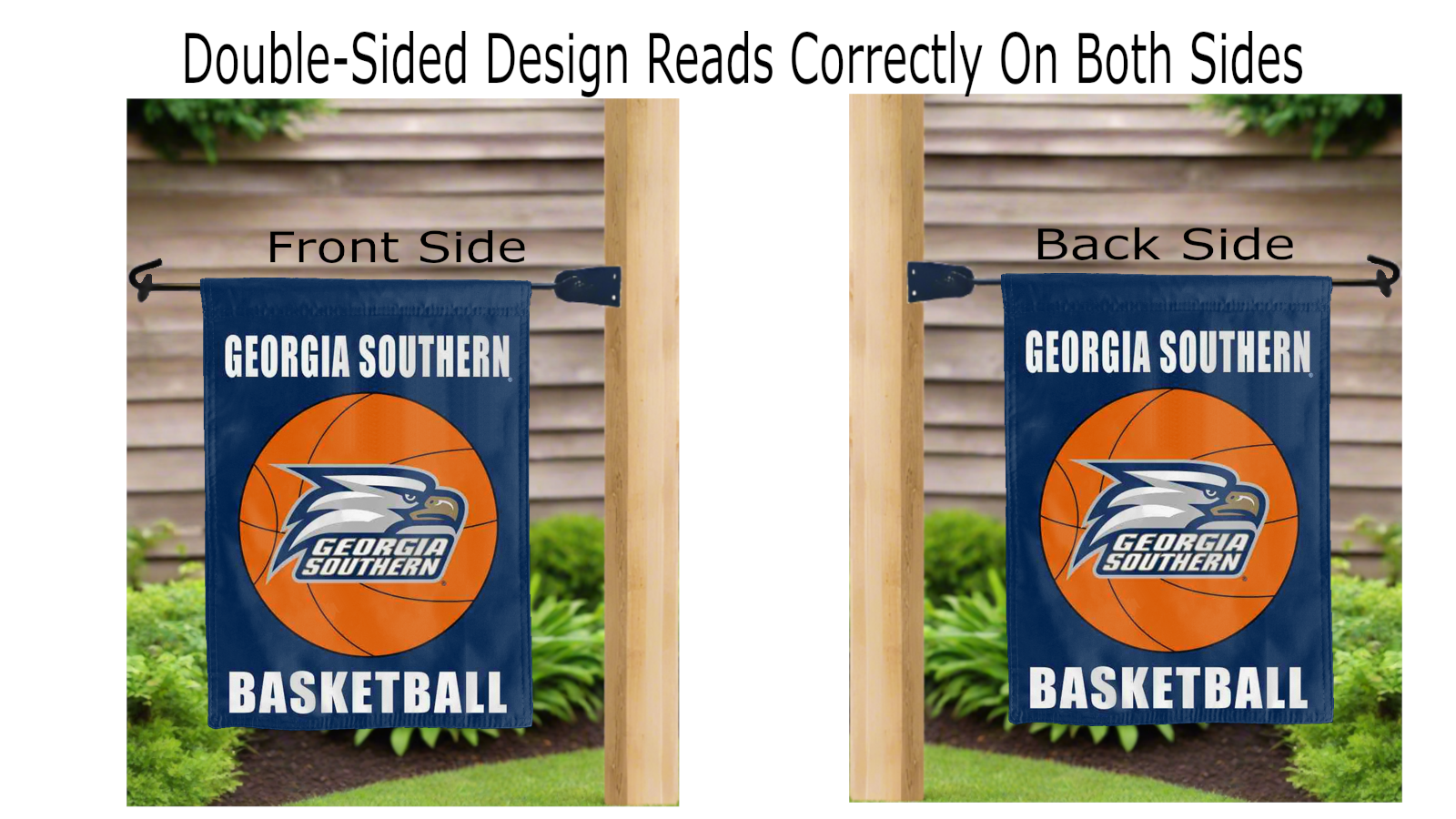 georgia southern basketball logo reading correctly on both sides of blue double sided garden flag