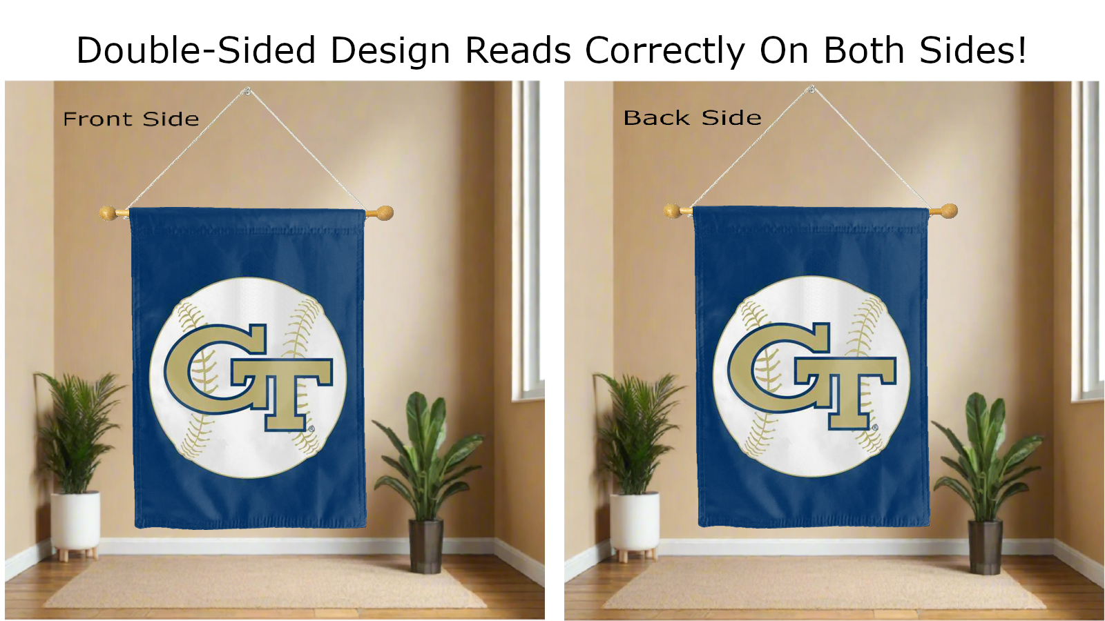 Whether you hang it inside your room or fly it outside your home, the top sleeve makes setup a breeze and this Georgia Tech Baseball House Flag effortlessly shows off your school spirit any day of the week.
