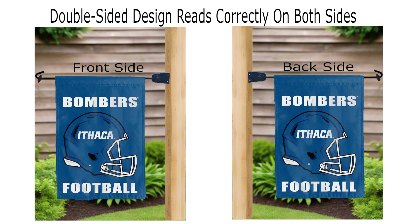 Break the monotonous look of your yard with this NCAA Officially Licensed, 13” x 18” Ithaca College Garden Flag! Made of 2-ply polyester, this flag is the result of two dye-sublimated flags sewn together with a middle liner sewn in between them to stop the see-through, allowing the logo to look clear and read correctly on both sides. The sleeve across the top makes it easy for you to insert the flag into your garden flag stand. No matter where you are, this garden flag is sure to make it clear your loyalty lies with the Ithaca College Bombers on game day.