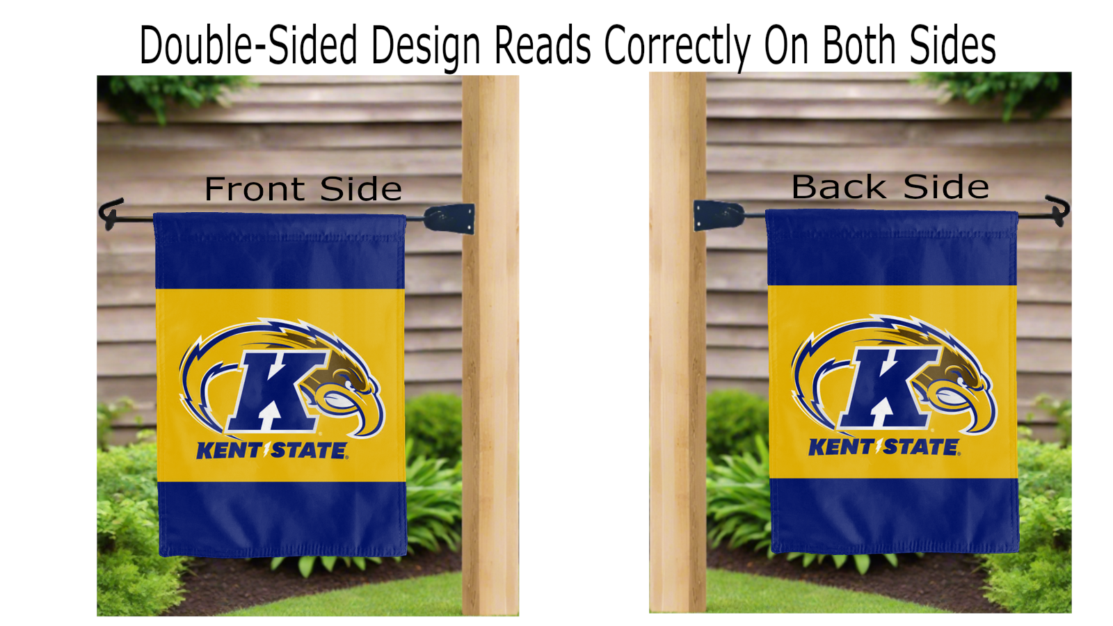 Let your voice scream “Go Golden Flashes!” with this NCAA Officially Licensed, 13” x 18” Kent State Garden flag! Made of 2-ply polyester, this flag is the result of two flags being screen printed and sewn together with a middle liner sewn in between them to stop the see-through, allowing the logos to look clear and read correctly on both sides. The sleeve across the top makes it easy for you to insert the flag into your garden flag stand. No matter where you are, this garden flag is sure to make it clear your loyalty lies with the Kent State Golden Flashes on game day.