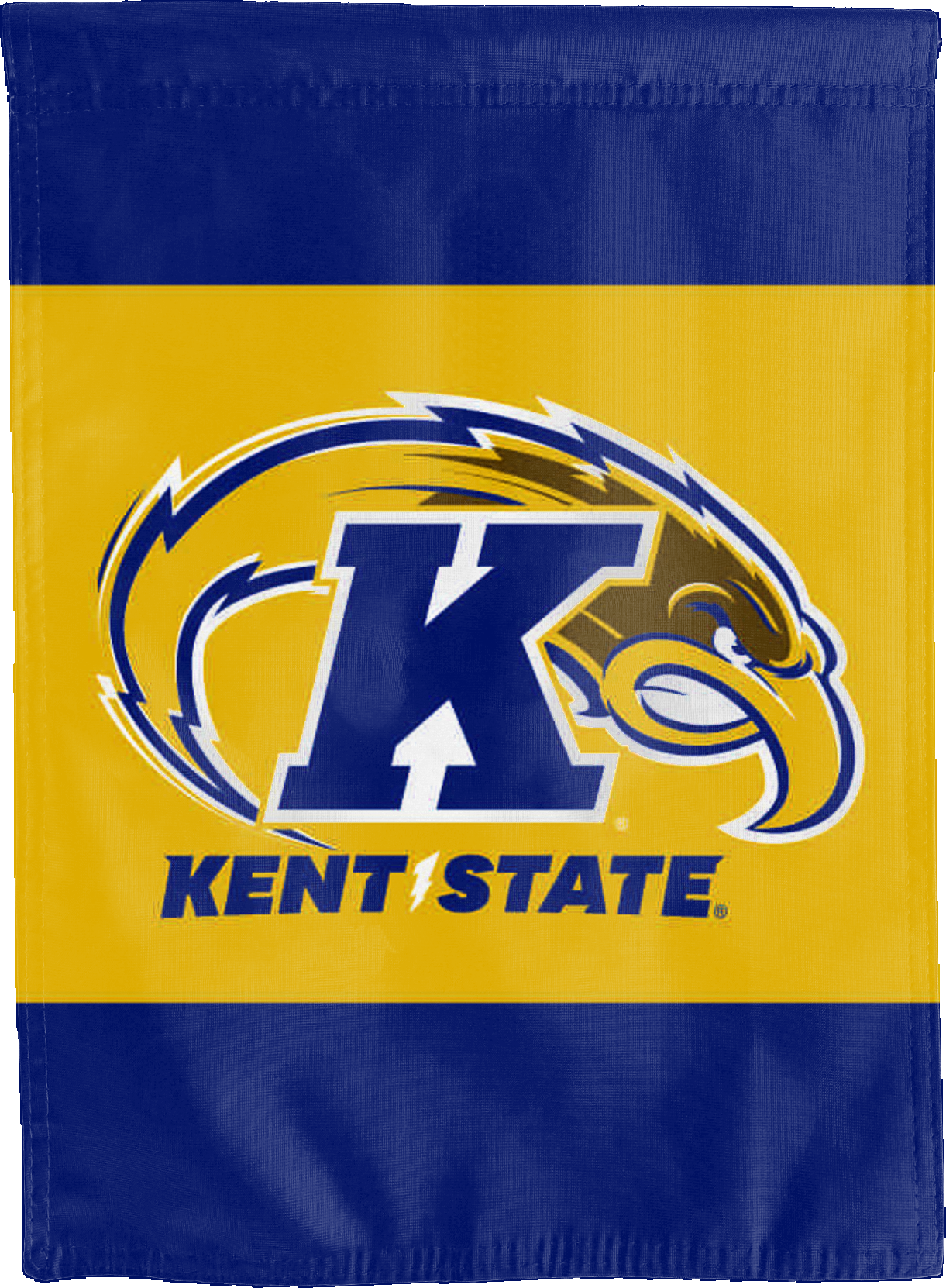 Break the monotonous look of your room with this Officially Licensed Kent State House Flag! Measuring 30" x 40", this house flag is the product of two screen-printed flags sewn together with a middle liner sewn in between the two flags to stop the see-through and allow the logo to read correctly on both sides. The sleeve across the top also makes it easy to insert the flag into a flagpole or flag hanger if you choose to hang it outside your home. Regardless of where you choose to hang it, this Kent State House Flag is sure to reflect your school pride any day of the week.