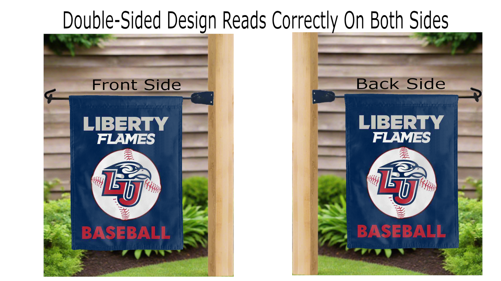 Let your voice scream "Go Liberty Flames!" with this NCAA Officially Licensed 13" x 18" Liberty University Garden flag! Made of 2-ply polyester, this flag is the result of two dye-sublimated flags sewn together with a middle liner sewn in between them to stop the see-through, allowing the logo to look clear and read correctly on both sides. The sleeve across the top makes it easy for you to insert the flag into your garden flag stand. No matter where you are, this garden flag is sure to make it clear your loyalty lies with the Liberty Flames on game day.