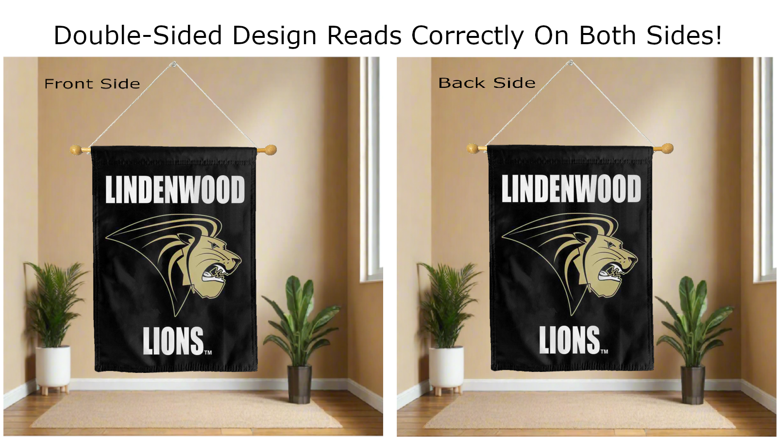 Break the monotonous look of your room with this Officially Licensed Lindenwood Lions Double Sided House Flag! Measuring 30" x 40", this house flag is the product of two screen-printed flags sewn together with a middle liner sewn in between the two flags to stop the see-through and allow the logo to read correctly on both sides. The sleeve across the top also makes it easy to insert the flag into a flagpole or flag hanger if you choose to hang it outside your home. Regardless of where you choose to hang it, this Lindenwood Lions Double Sided House Flag is sure to reflect your school pride any day of the week.