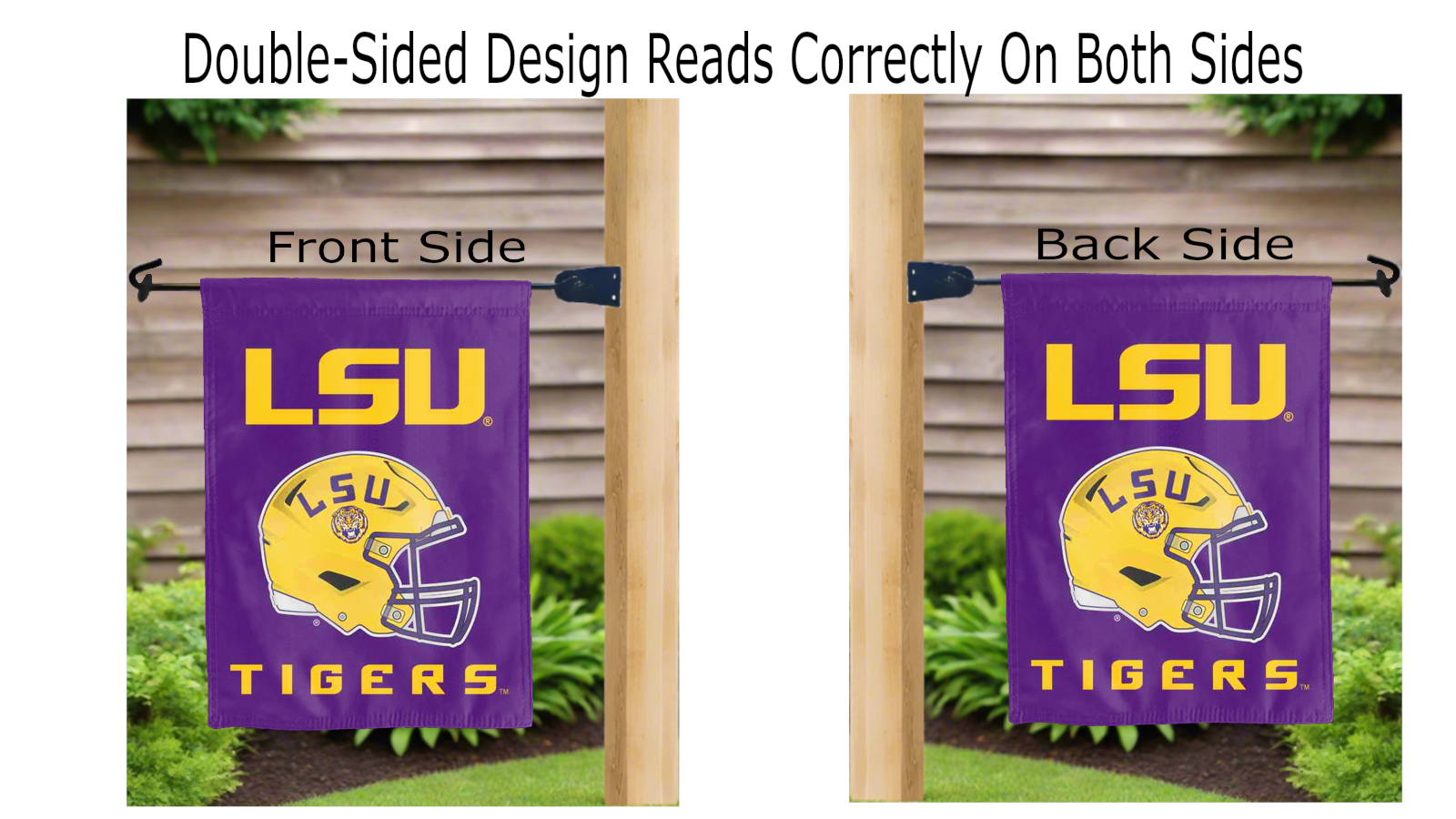 Let your voice scream "Go Tigers!" with this NCAA Officially Licensed 13" x 18" LSU Football Garden flag! Made of 2-ply polyester, this flag is the result of two dye-sublimated flags sewn together with a middle liner sewn in between them to stop the see-through, allowing the logo to look clear and read correctly on both sides. The sleeve across the top makes it easy for you to insert the flag into your garden flag stand. No matter where you are, this garden flag is sure to make it clear your loyalty lies with the Tigers on game day.