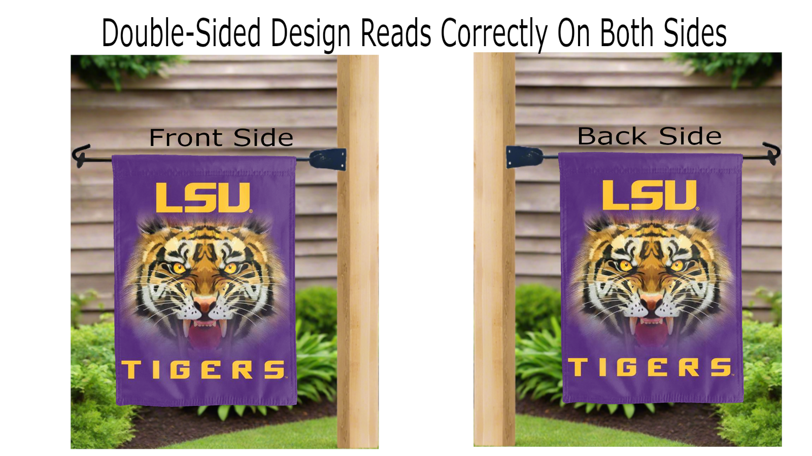 Let your voice scream "Go Tigers!" with this NCAA Officially Licensed 13" x 18" LSU Tigers Garden flag! Made of 2-ply polyester, this flag is the result of two dye-sublimated flags sewn together with a middle liner sewn in between them to stop the see-through, allowing the logo to look clear and read correctly on both sides. The sleeve across the top makes it easy for you to insert the flag into your garden flag stand. No matter where you are, this garden flag is sure to make it clear your loyalty lies with the Tigers on game day.