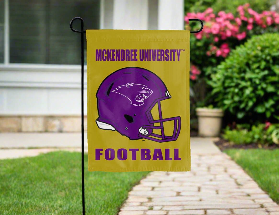 Let your voice scream "Go Bearcats!" with this NCAA Officially Licensed 13" x 18" McKendree University Football Garden flag! Made of 2-ply polyester, this flag is the result of two dye-sublimated flags sewn together with a middle liner sewn in between them to stop the see-through, allowing the logo to look clear and read correctly on both sides. The sleeve across the top makes it easy for you to insert the flag into your garden flag stand. No matter where you are, this garden flag is sure to make it clear your loyalty lies with the Bearcats on game day.