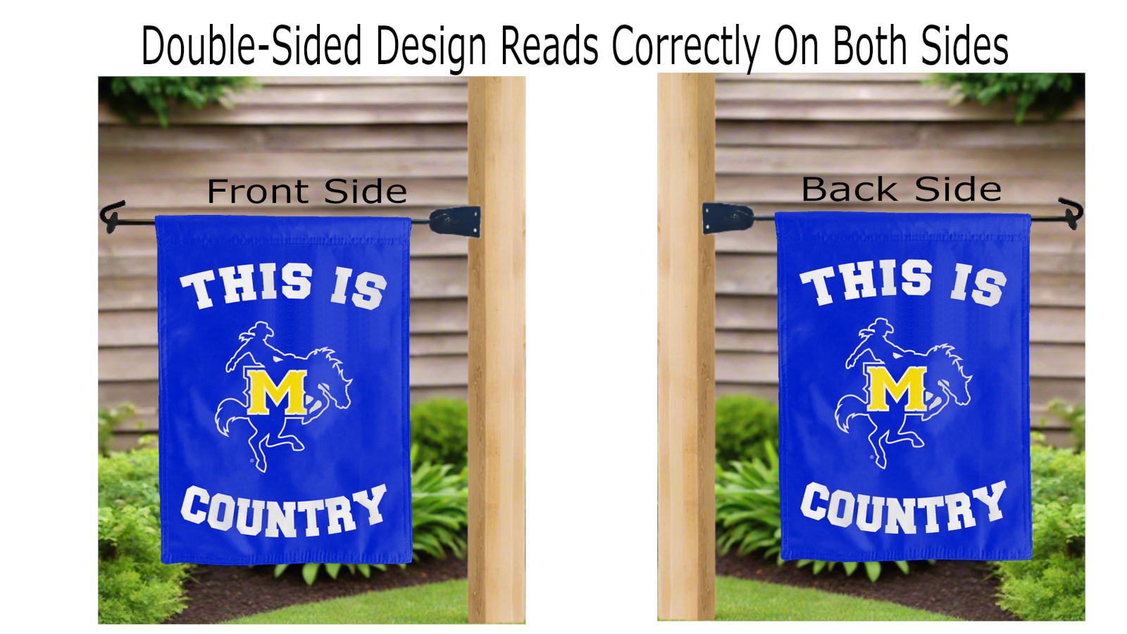 this is mcneese state country logo reading correctly on both sides of garden flag