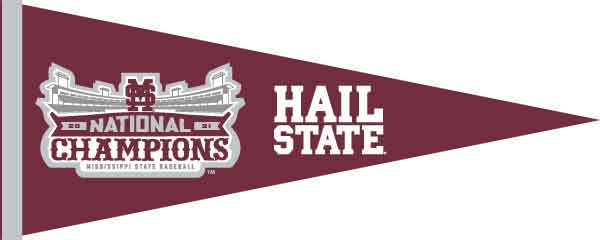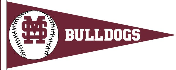 Love Mississippi State Baseball? Want a pennant that allows you to show your support for the Mississippi State Baseball team? Then look no further than this Officially Licensed Mississippi State Baseball Pennant! The Mississippi State Baseball Pennant logo is printed on this 12" x 30" wide pennant. The pennant itself is made of felt and includes a vertical sleeve on the left side to allow for easy insertion of a pennant stick. Regardless of wherever you choose to hang it, this Mississippi State Baseball Pennant is sure to make it clear your loyalty lies with the Bulldogs on game day.