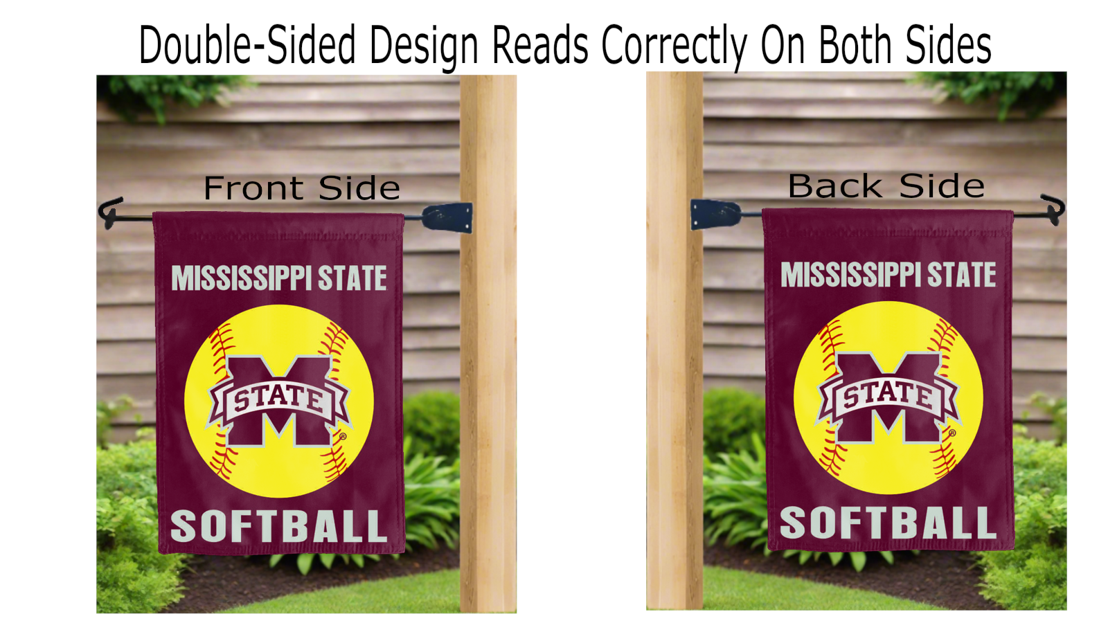 Let your voice scream "Go Bulldogs!" with this NCAA Officially Licensed 13" x 18" Mississippi State Softball Garden flag! Made of 2-ply polyester, this flag is the result of two dye-sublimated flags sewn together with a middle liner sewn in between them to stop the see-through, allowing the logo to look clear and read correctly on both sides. The sleeve across the top makes it easy for you to insert the flag into your garden flag stand. No matter where you are, this garden flag is sure to make it clear your loyalty lies with the Bulldogs on game day.