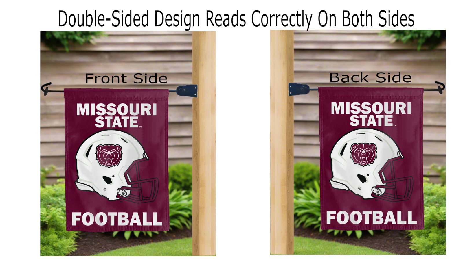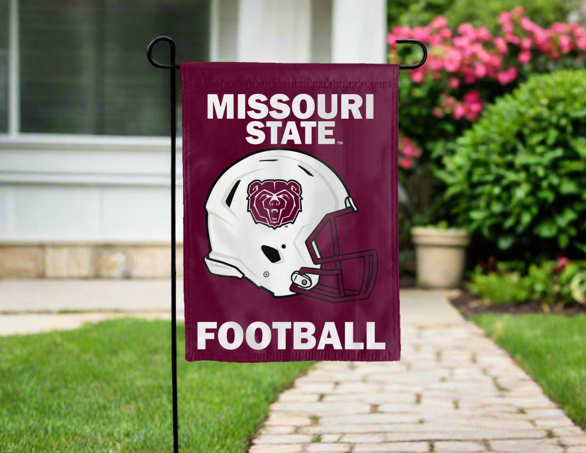 Let your voice scream "Go Bears!" with this NCAA Officially Licensed 13" x 18" Missouri State University Football Garden flag! Made of 2-ply polyester, this flag is the result of two dye-sublimated flags sewn together with a middle liner sewn in between them to stop the see-through, allowing the logo to look clear and read correctly on both sides. The sleeve across the top makes it easy for you to insert the flag into your garden flag stand. No matter where you are, this garden flag is sure to make it clear your loyalty lies with the Bears on game day.