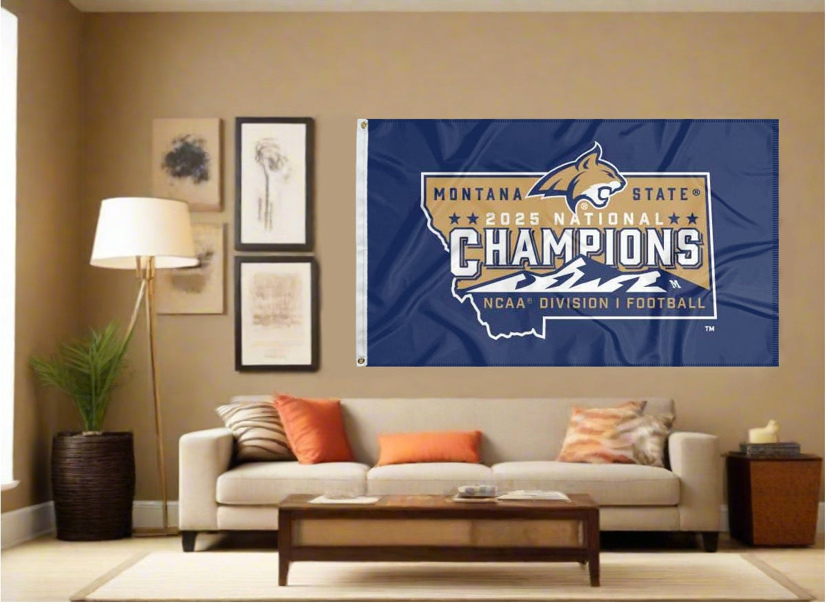 Whether you want to celebrate your champion outside with the neighbors or hang it as the perfect memento inside your fan cave, this Montana State Football Division 1 National Champions 2025 Flag is the perfect way to show you stood with the Bobcats all the way!