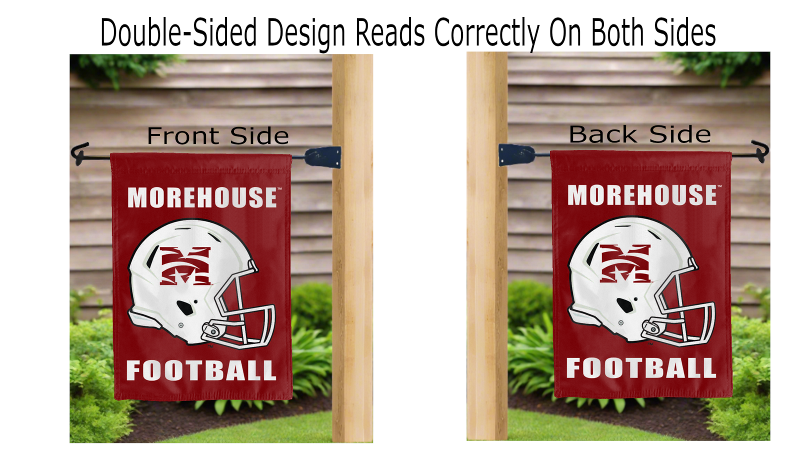 Let your voice scream "Go Maroon Tigers!" with this NCAA Officially Licensed 13" x 18" Morehouse College Garden flag! Made of 2-ply polyester, this flag is the result of two dye-sublimated flags sewn together with a middle liner sewn in between them to stop the see-through, allowing the logo to look clear and read correctly on both sides. The sleeve across the top makes it easy for you to insert the flag into your garden flag stand. No matter where you are, this garden flag is sure to make it clear your loyalty lies with the Morehouse College Maroon Tigers on game day.