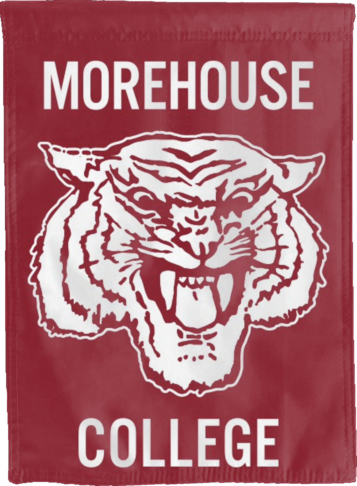 morehouse college maroon tiger logo reading correctly on both sides of maroon double sided house flag