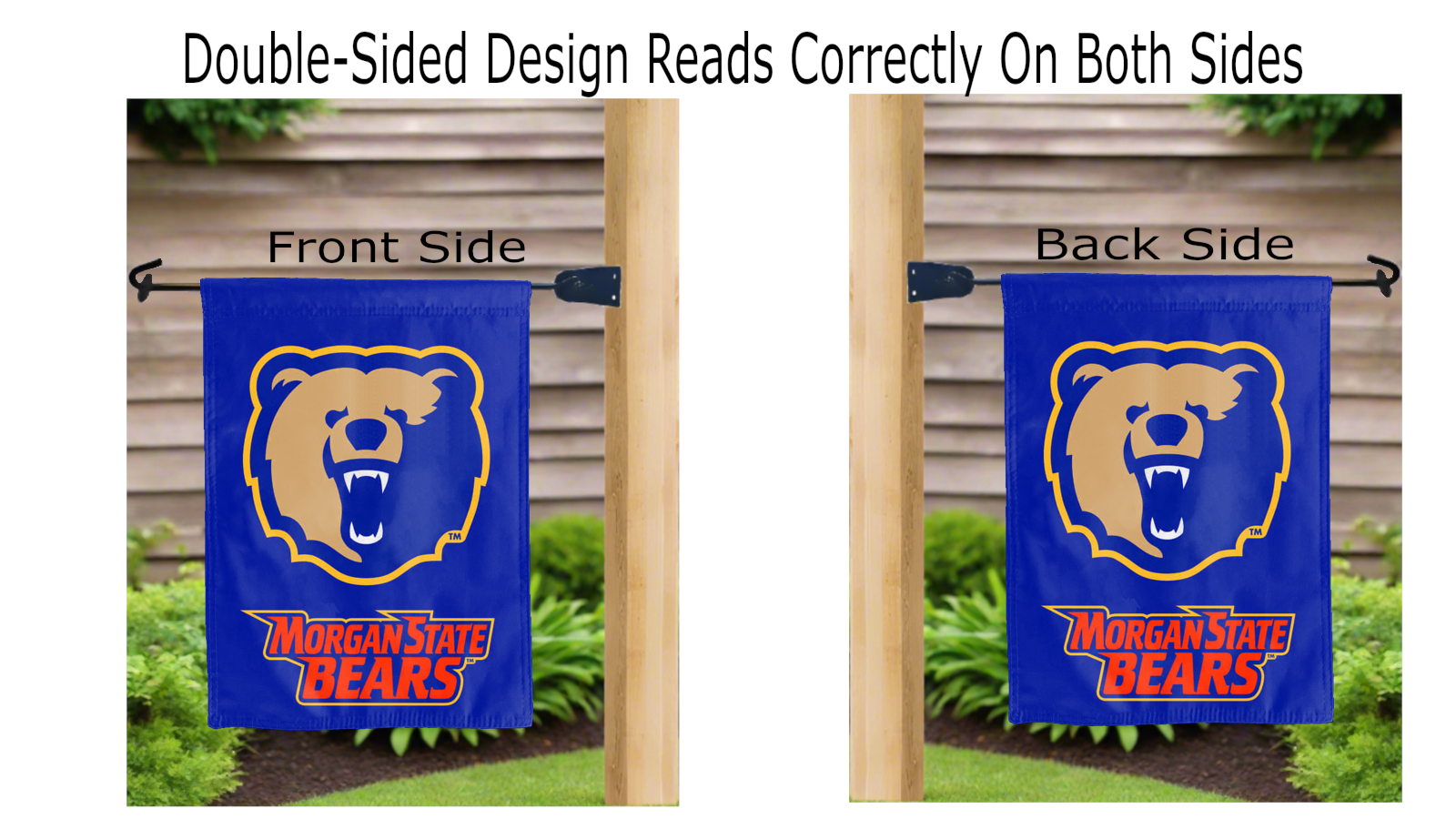 Let your voice scream “Go Bears!” with this NCAA Officially Licensed, 13” x 18” Morgan State Garden flag! Made of 2-ply polyester, this flag is the result of two flags being screen printed and sewn together with a middle liner sewn in between them to stop the see-through, allowing the logo to look clear and read correctly on both sides. The sleeve across the top makes it easy for you to insert the flag into your garden flag stand. No matter where you are, this garden flag is sure to make it clear your loyalty lies with the Morgan State Bears on game day.