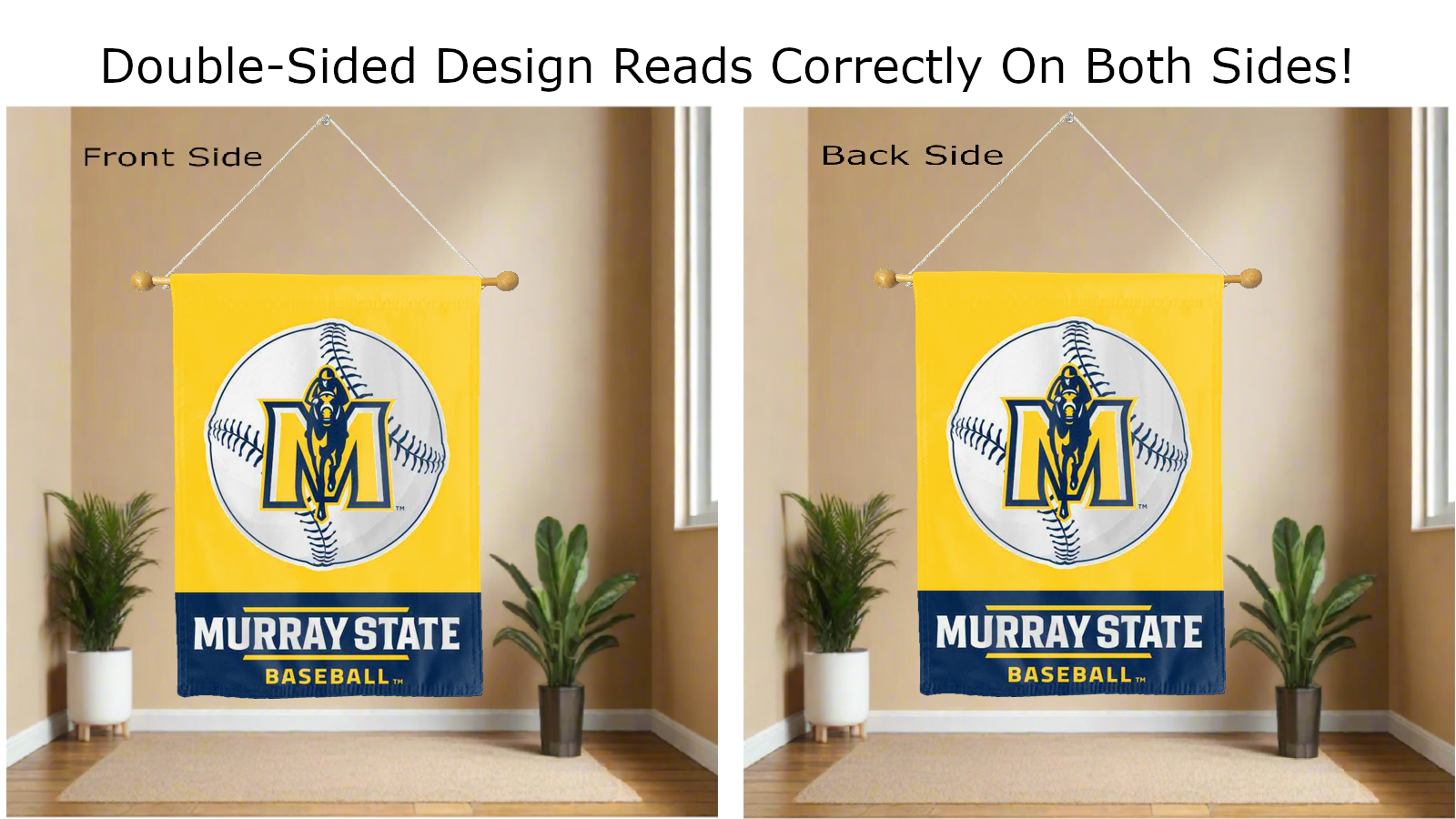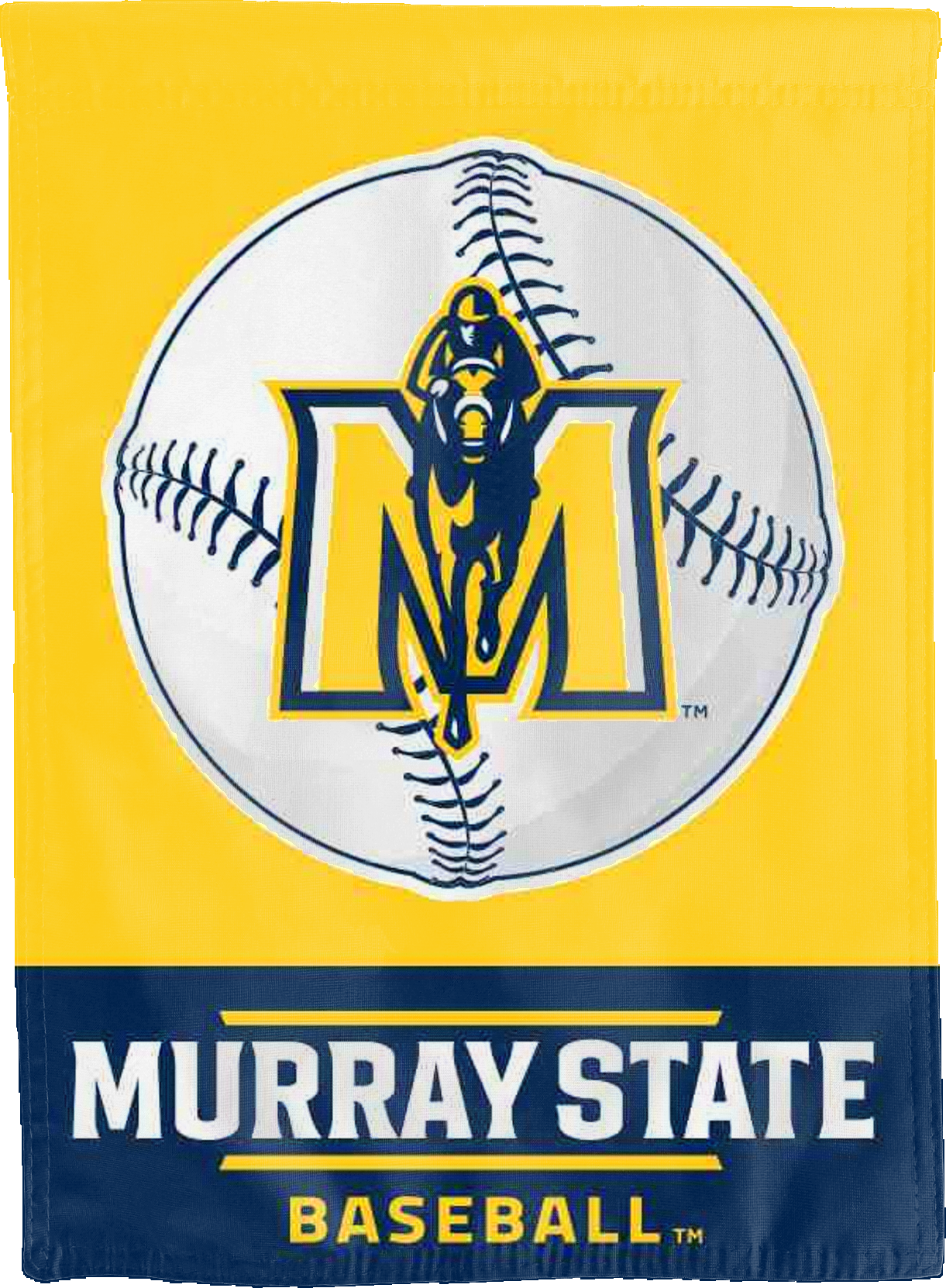 Approved by Murray State University, the Racers Baseball Team's logo reads correctly on both sides of this 30" x 40", double-sided house flag, making it easy to see no matter which side you stand on.