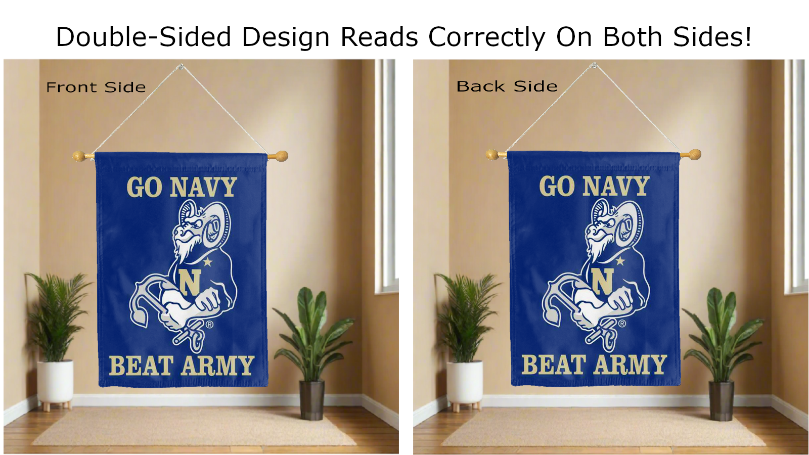 go navy beat army logo reading correctly on both sides of house flag