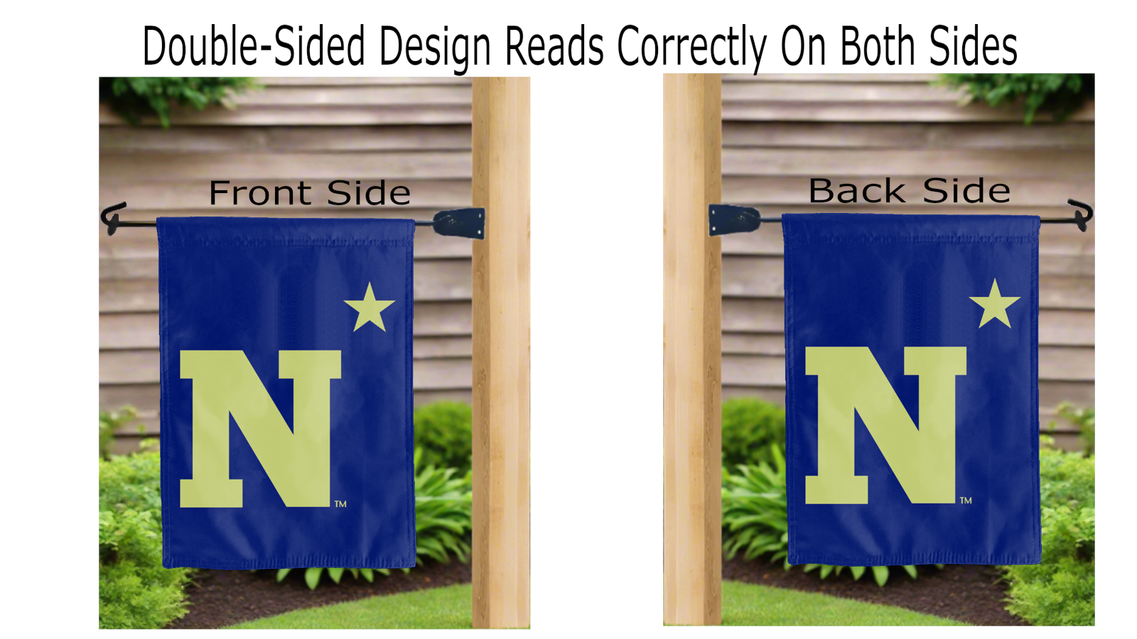 • Load image into Gallery viewer, naval academy N star logo reading correctly on both sides of garden flag