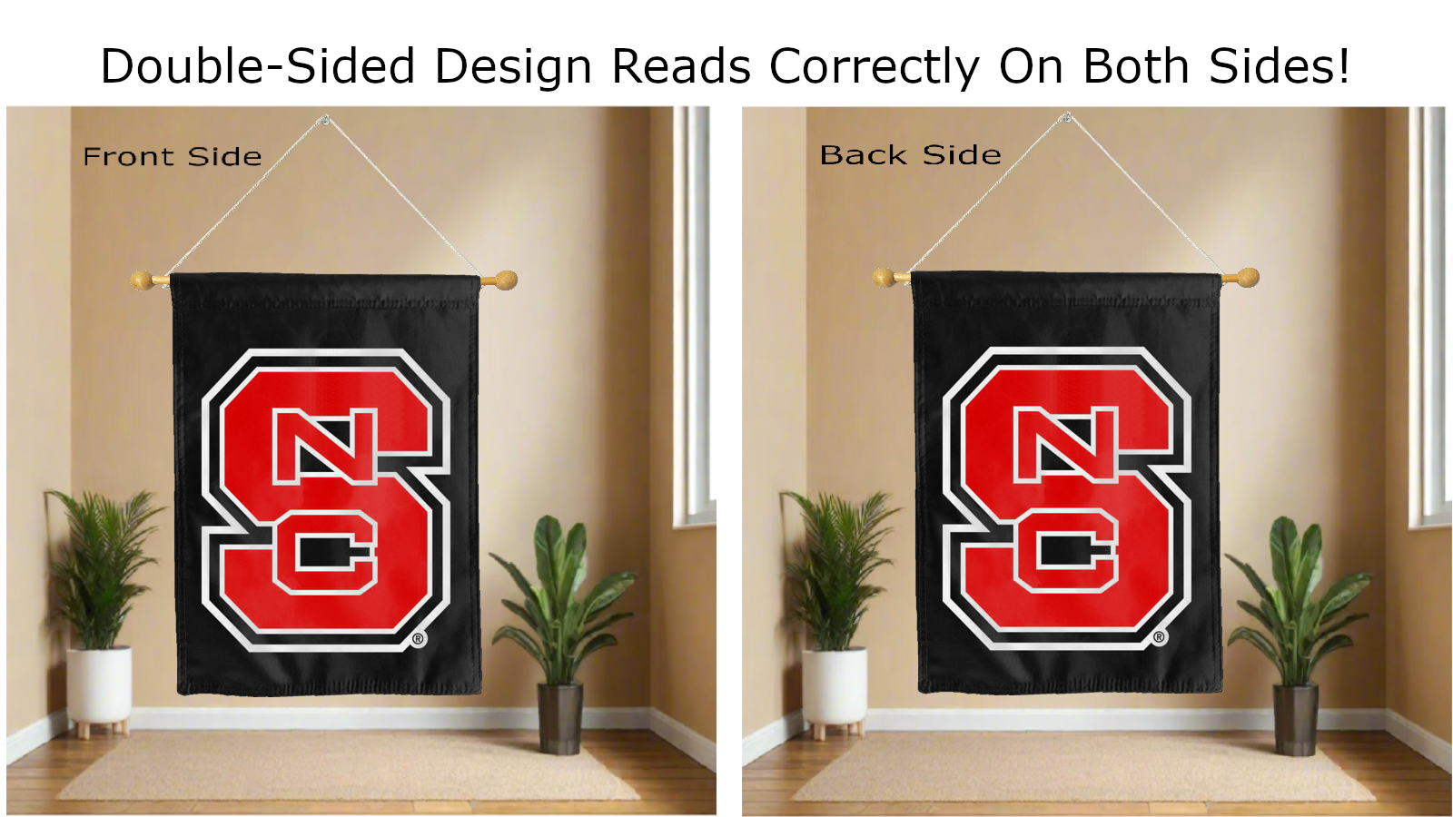 Break the monotonous look of your room with this Officially Licensed North Carolina State University House Flag! Measuring 30" x 40", this house flag is the product of two screen-printed flags sewn together with a middle liner sewn in between the two flags to stop the see-through and allow the logo to read correctly on both sides. The sleeve across the top also makes it easy to insert the flag into a flagpole or flag hanger if you choose to hang it outside your home. Regardless of where you choose to hang it, this North Carolina State University House Flag is sure to reflect your school pride any day of the week.