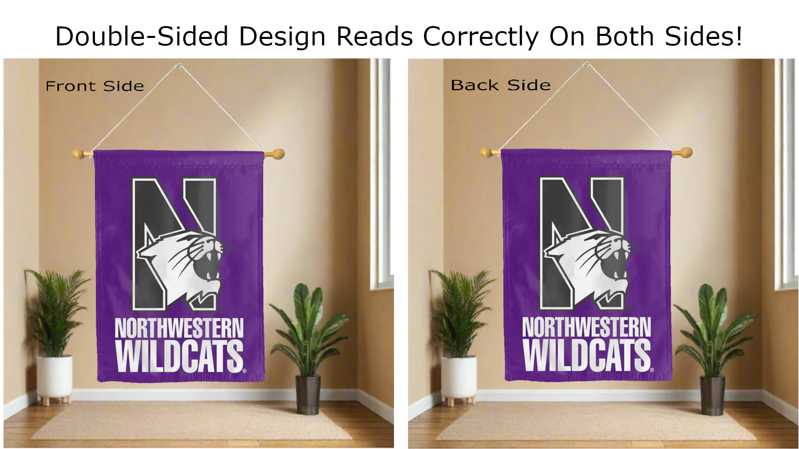 Break the monotonous look of your room with this Officially Licensed Northwestern University House Flag! Measuring 30" x 40", this house flag is the product of two screen-printed flags sewn together with a middle liner sewn in between the two flags to stop the see-through and allow the logo to read correctly on both sides. The sleeve across the top also makes it easy to insert the flag into a flagpole or flag hanger if you choose to hang it outside your home. Regardless of where you choose to hang it, this Northwestern University House Flag is sure to reflect your school pride any day of the week.