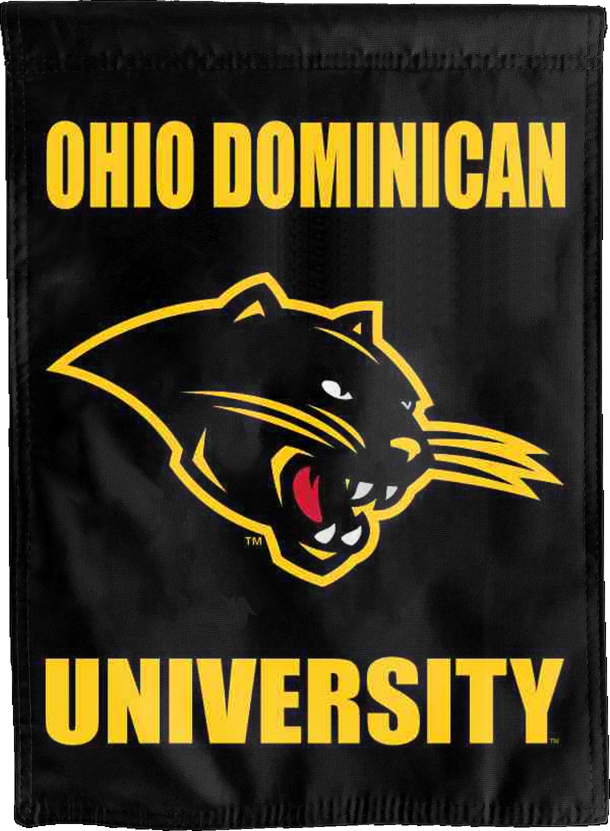 Break the monotonous look of your room with this Officially Licensed Ohio Dominican University Double Sided House Flag! Measuring 30" x 40", this house flag is the product of two screen-printed flags sewn together with a middle liner sewn in between the two flags to stop the see-through and allow the logo to read correctly on both sides. The sleeve across the top also makes it easy to insert the flag into a flagpole or flag hanger if you choose to hang it outside your home. Regardless of where you choose to hang it, this Ohio Dominican University Double Sided House Flag is sure to reflect your school pride any day of the week.