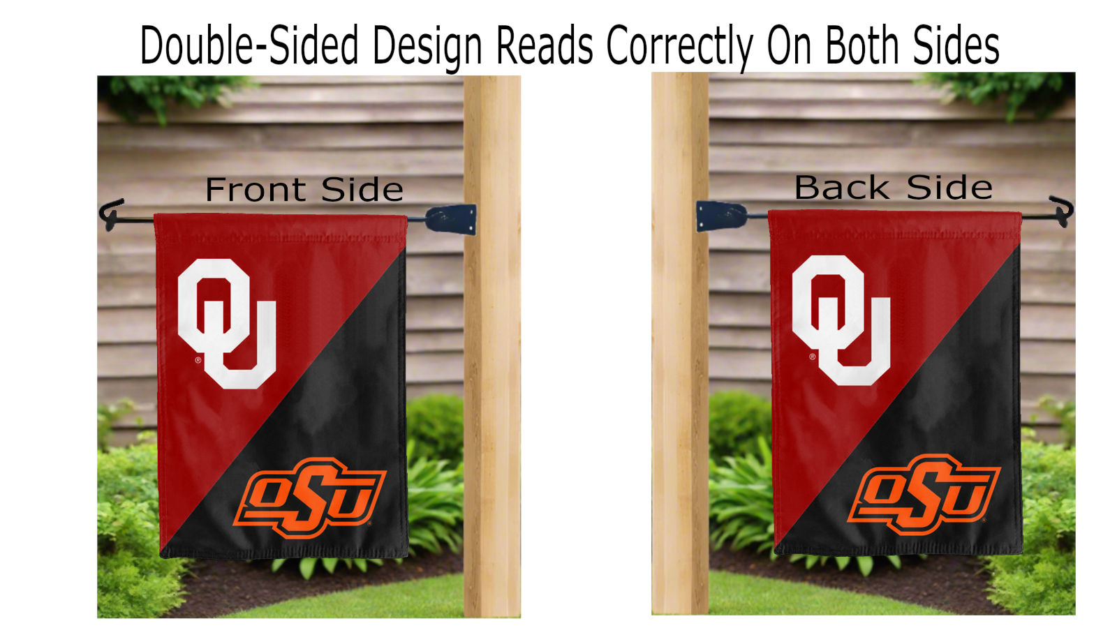 Show your support for both the University of Oklahoma Sooners and Oklahoma State University Cowboys with this Officially Licensed 13x18 House Divided Garden Flag with University of Oklahoma and Oklahoma State University Logos! This flag is the ultimate result of two screen-printed flags sewn together to create this house divided garden flag. A middle liner is sewn in between the two flags to stop the see-through, allowing the logos to look clear and read correctly on both sides. The sleeve across the top makes it easy for you to insert the flag into your garden flag stand. No matter what day of the week, this house divided garden flag is sure to make it clear your loyalty lies with both teams on game day.