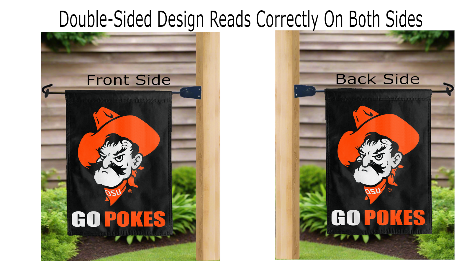 Let your voice scream “Go Cowboys!” with this NCAA Officially Licensed, 13x18 Oklahoma State Garden Flag with Pistol Pete and Go Pokes Logo! Made of 2-ply polyester, this flag is the result of two flags being screen printed and sewn together with a middle liner sewn in between them to stop the see-through, allowing the Pistol Pete and Go Pokes logo to look clear and read correctly on both sides. The sleeve across the top makes it easy for you to insert the flag into your garden flag stand. No matter where you are, this Oklahoma State Garden Flag with Pistol Pete and Go Pokes Logo is sure to make it clear your loyalty lies with the Cowboys on game day.