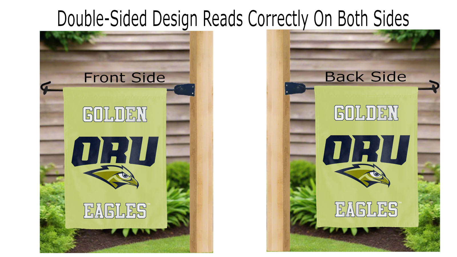 Let your voice scream "Go Golden Eagles!" with this NCAA Officially Licensed, 13" x 18" Oral Roberts University Garden flag! Made of 2-ply polyester, this flag is the result of two dye-sublimated flags sewn together with a middle liner sewn in between them to stop the see-through, allowing the logo to look clear and read correctly on both sides. The sleeve across the top makes it easy for you to insert the flag into your garden flag stand. No matter where you are, this garden flag is sure to make it clear your loyalty lies with the Golden Eagles on game day.
