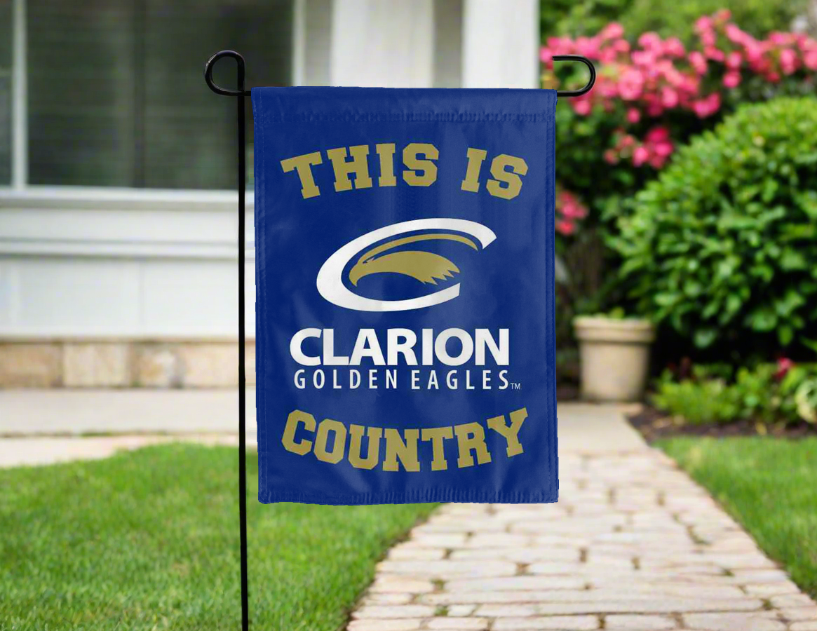 Let your voice scream "Go Golden Eagles!" with this NCAA Officially Licensed 13" x 18" Pennsylvania Western University Clarion This Is Pennsylvania Western University Clarion Golden Eagles Country Garden flag! Made of 2-ply polyester, this flag is the result of two dye-sublimated flags sewn together with a middle liner sewn in between them to stop the see-through, allowing the logo to look clear and read correctly on both sides. The sleeve across the top makes it easy for you to insert the flag into your garden flag stand. No matter where you are, this garden flag is sure to make it clear your loyalty lies with the Pennsylvania Western University Clarion Golden Eagles on game day.