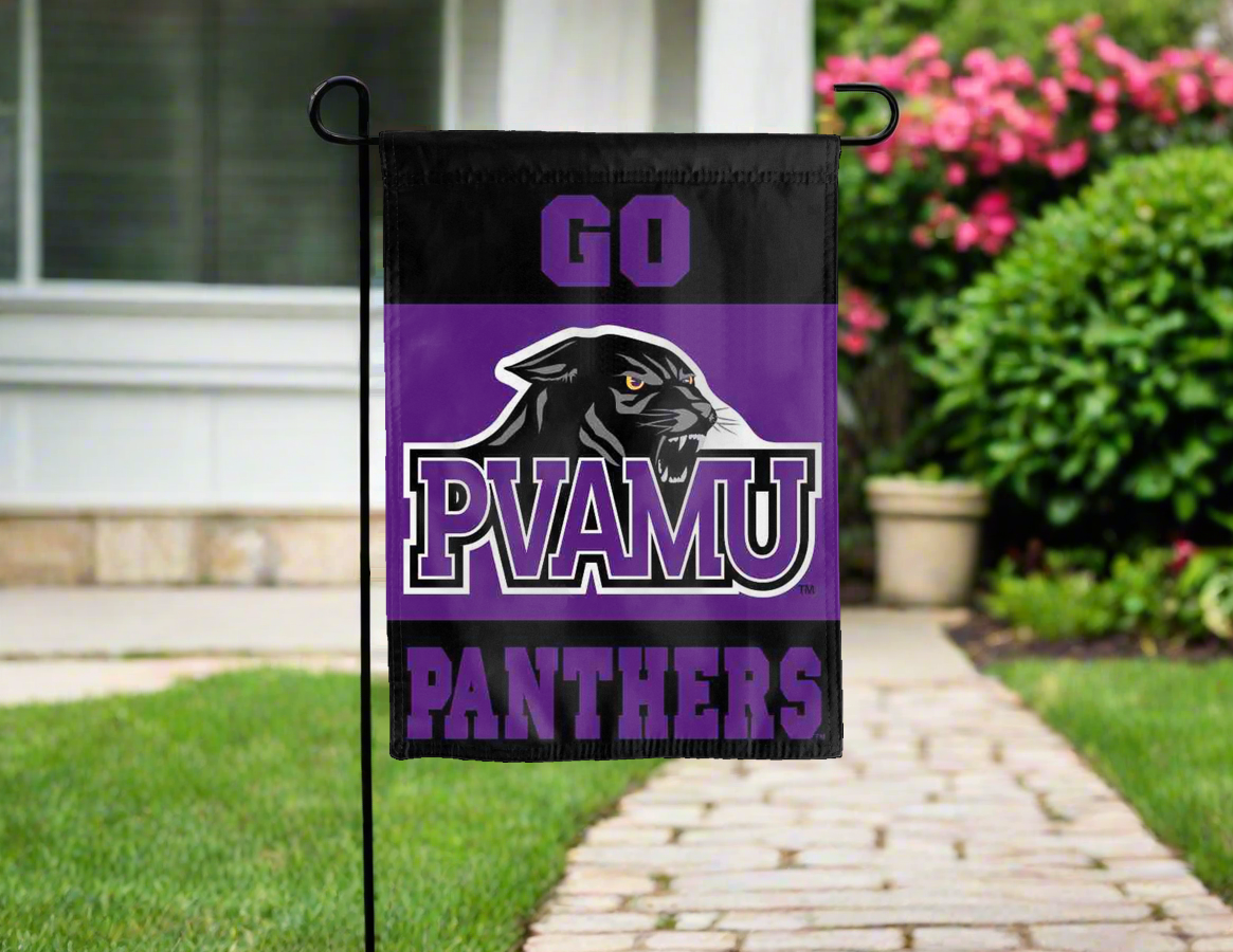 Let your voice scream “Go Panthers!” with this NCAA Officially Licensed, 13” x 18” Prairie View A&M University Garden flag! Made of 2-ply polyester, this flag is the result of two flags being screen printed and sewn together with a middle liner sewn in between them to stop the see-through, allowing the logos to look clear and read correctly on both sides. The sleeve across the top makes it easy for you to insert the flag into your garden flag stand. No matter where you are, this garden flag is sure to make it clear your loyalty lies with the Prairie View A&M University Panthers on game day.
