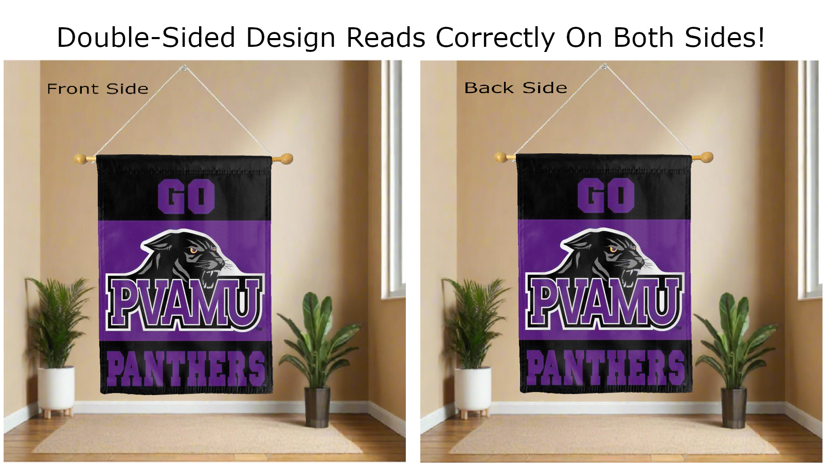 Break the monotonous look of your room with this Officially Licensed Prairie View A&M University House Flag! Measuring 30" x 40", this house flag is the product of two screen-printed flags sewn together with a middle liner sewn in between the two flags to stop the see-through and allow the logo to read correctly on both sides. The sleeve across the top also makes it easy to insert the flag into a flagpole or flag hanger if you choose to hang it outside your home. Regardless of where you choose to hang it, this Prairie View A&M University House Flag is sure to reflect your school pride any day of the week.