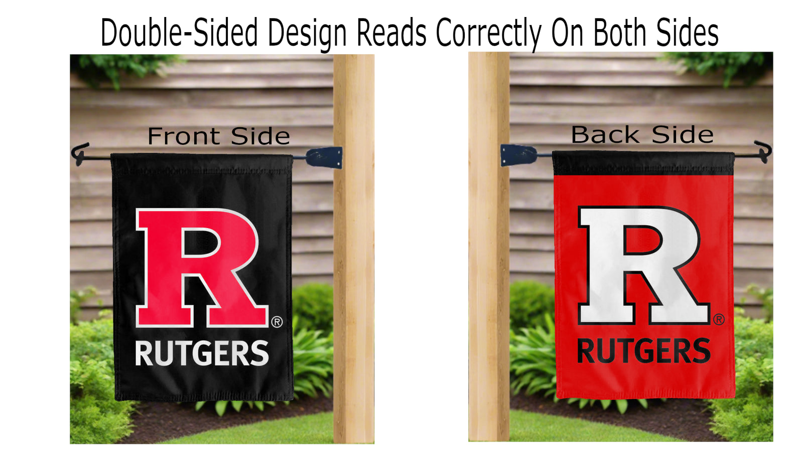 Let your voice scream “Go Scarlet Knights!” with this NCAA Officially Licensed, 13” x 18” Rutgers University Garden flag! Made of 2-ply polyester, this flag is the result of two flags being screen printed and sewn together with a middle liner sewn in between them to stop the see-through, allowing the logo to look clear and read correctly on both sides. The sleeve across the top makes it easy for you to insert the flag into your garden flag stand. No matter where you are, this garden flag is sure to make it clear your loyalty lies with the Rutgers University Scarlet Knights on game day.