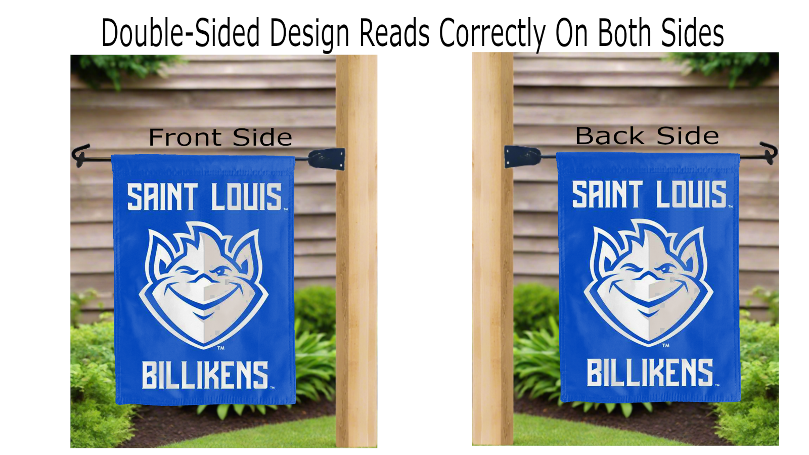 Let your voice scream “Go Billikens!” with this NCAA Officially Licensed, 13” x 18” blue Saint Louis University (SLU) Garden flag! Made of 2-ply polyester, this flag is the result of two flags being screen printed and sewn together with a middle liner sewn in between them to stop the see-through, allowing the logos to look clear and read correctly on both sides. The sleeve across the top makes it easy for you to insert the flag into your garden flag stand. No matter where you are, this garden flag is sure to make it clear your loyalty lies with the Saint Louis University (SLU) Billikens on game day.